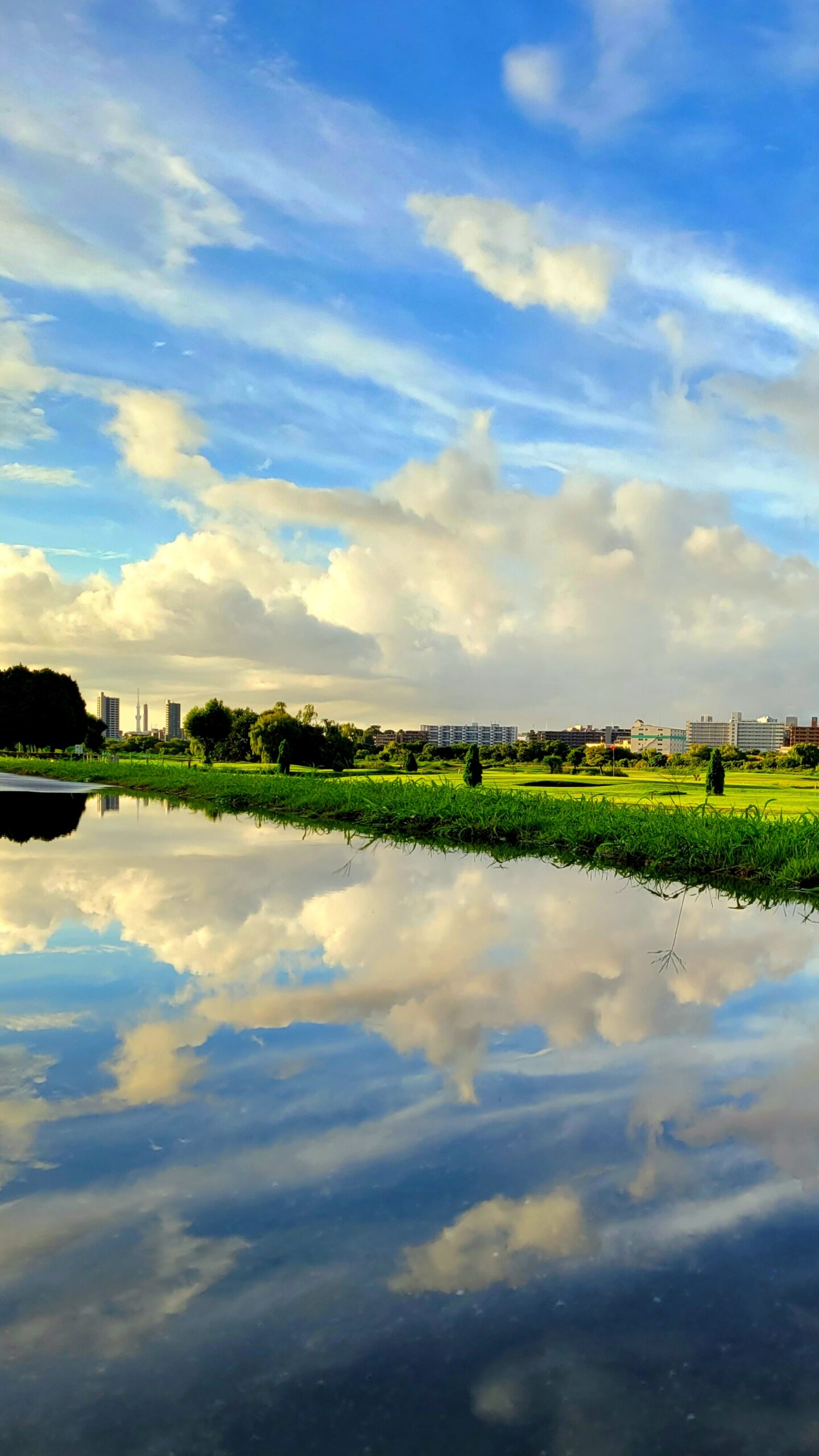 この写真は、雨上がりの荒川土手で、水たまりに映る空を撮影しました。雨後の澄んだ空と静かな水面に映る景色が調和し、自然が生み出す美しい瞬間を切り取った一枚です。雨上がりの水たまりは、いつもと違う視点から景色を楽しむ絶好のチャンスです。水面に映る空や木々、建物の反射は、自然が作り出すアートのような美しさを持っています。特に静かな場所では、水面が鏡のようになり、現実と反射の境界が曖昧になる幻想的な写真を撮ることができます。撮影の際は、水たまりに近づいて角度を工夫することで、より鮮明でユニークな映り込みを引き出すことができます。また、朝や夕方の柔らかな光の時間帯を狙うと、水面がさらに美しく輝き、撮影の楽しさが広がります。