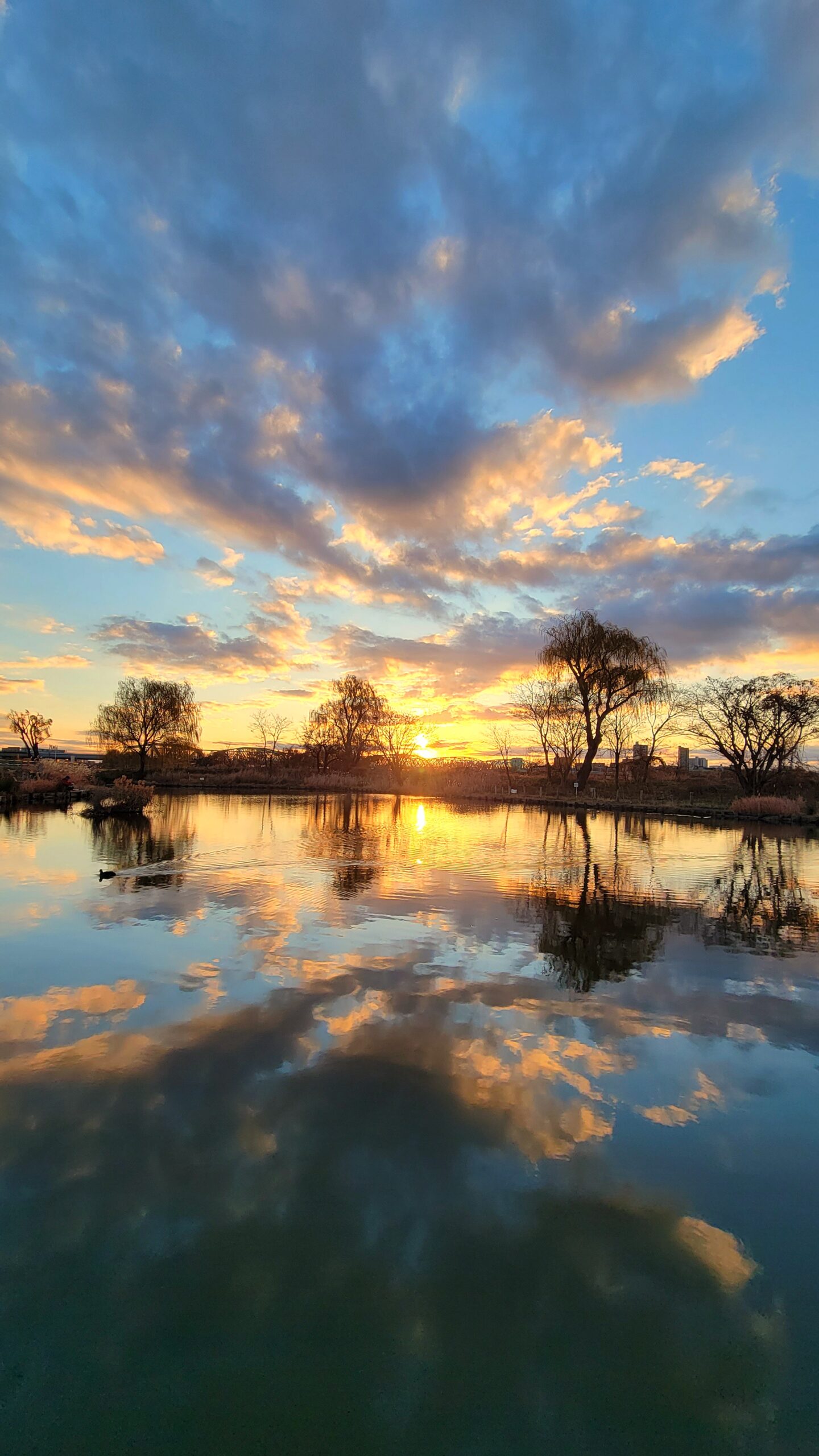 この写真は、朝の静寂を湛えた水面と、ゆっくりと昇る日の出が織りなす風景を撮影したものです。陽光が水面を柔らかく照らし、静けさの中に力強さが感じられる情景が広がっています。新しい一日の始まりを告げるエネルギーと、水面の穏やかさが絶妙に融合した瞬間を切り取りました。荒川土手で迎える日の出は、日常の喧騒を忘れさせてくれる特別なひとときです。広がる空が徐々に明るくなり、朝焼けに染まる空と川の景色が、心を癒してくれます。一日のスタートを穏やかな気持ちで迎えるために、ぜひ荒川土手を訪れてみてください。
