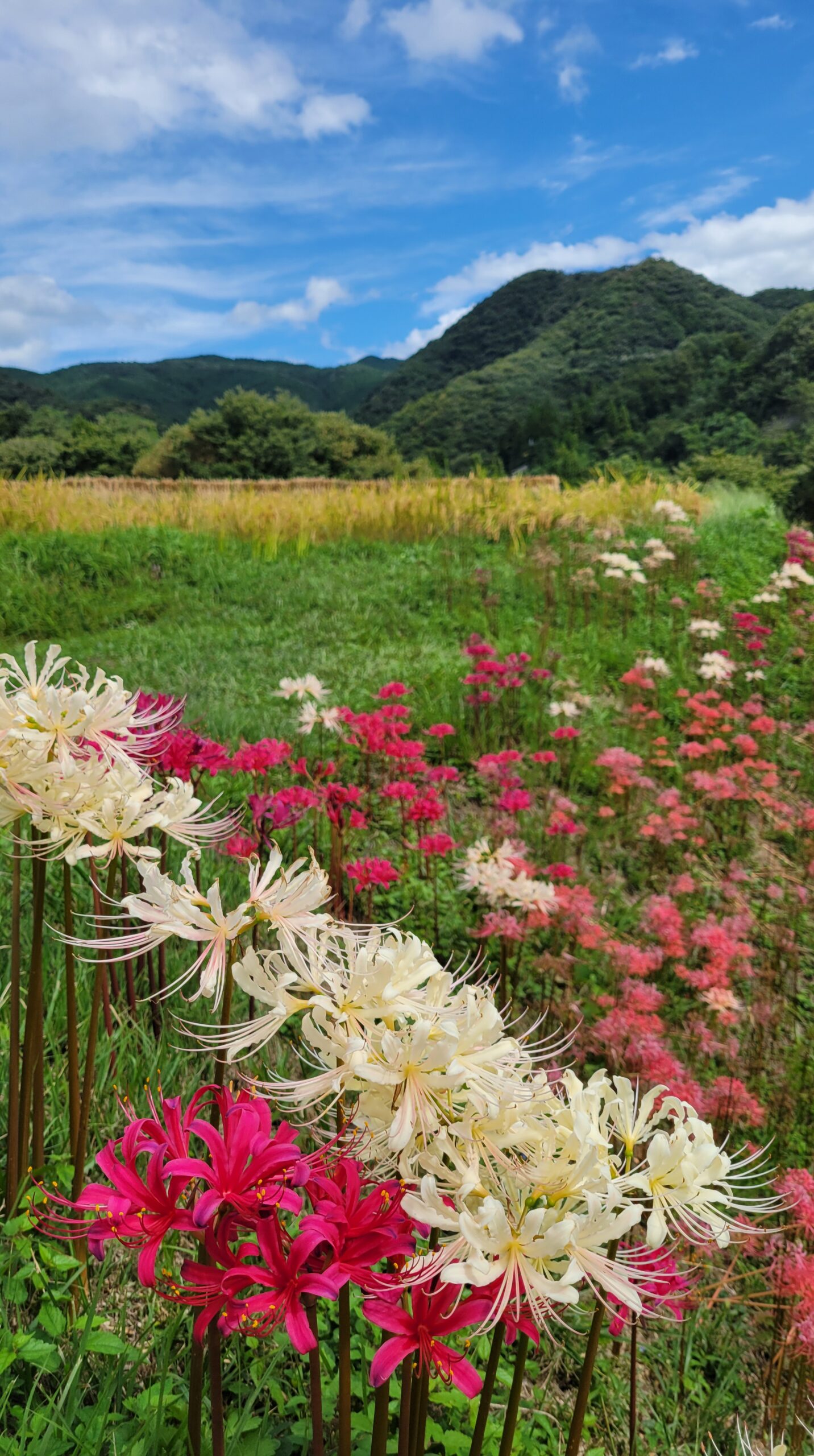寺坂棚田|紅白の彼岸花と遠くの山並みがつくる季節のコントラスト 2025.09.242025.09.25 2025年2025年9月9月埼玉県寺坂棚田曼殊沙華(彼岸花)田んぼ色々な風景花 20250921_121723 ダウンロード この写真は、寺坂棚田で、紅白に咲き分ける彼岸花と遠くの山々の姿を撮影したもので、コントラストの効いた色合いと奥行き感が楽しめる風景です。 撮影日時:2025年9月21日 撮影者:わびさん 撮影場所:寺坂棚田 住所:埼玉県秩父郡横瀬町横瀬1846 撮影機材:Galaxy s21+ 同日の撮影ルート:武蔵丘陵森林公園 → 寺坂棚田 → ちちぶ花見の里