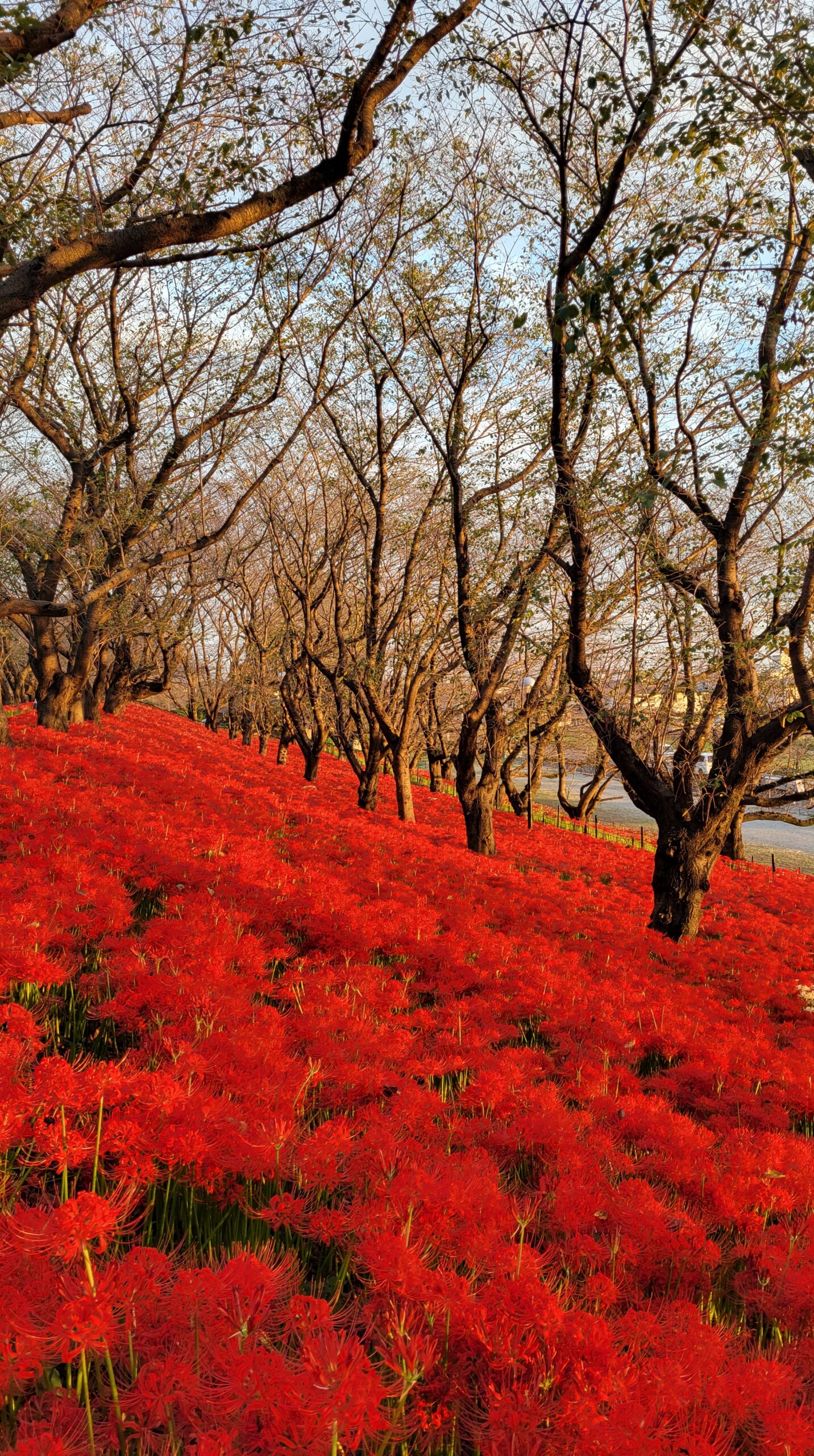 幸手権現堂|一面に広がる真っ赤な彼岸花の群生が圧巻の光景 2025.10.062025.10.07 2025年2025年9月9月埼玉県幸手権現堂曼殊沙華(彼岸花)花 20250929_171027 ダウンロード この写真は、幸手権現堂で、堤沿いに続く一面の彼岸花を撮影したものです。真っ赤な花が奥まで続く光景は圧巻で、秋の訪れを感じさせる美しい瞬間でした。 撮影日時:2025年9月29日 撮影者:わびさん 撮影場所:幸手権現堂 住所:埼玉県幸手市内国府間887番地3 撮影機材:Galaxy s21+ 同日の撮影ルート:幸手権現堂
