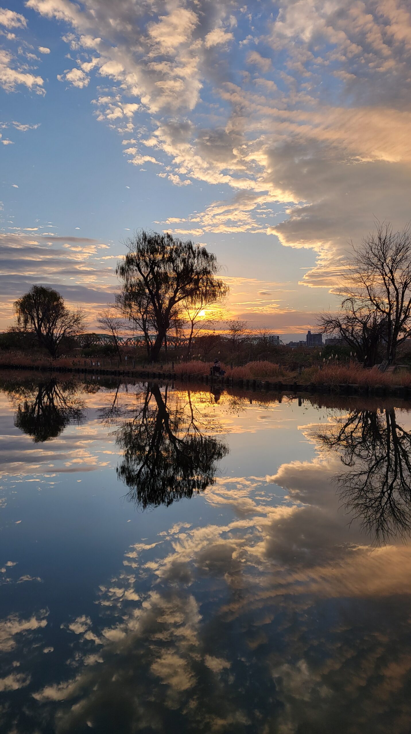 この写真は、荒川土手で刻一刻と変化する空の表情の中、迫りくる雲の迫力とスピード感を意識して撮影した一枚です。