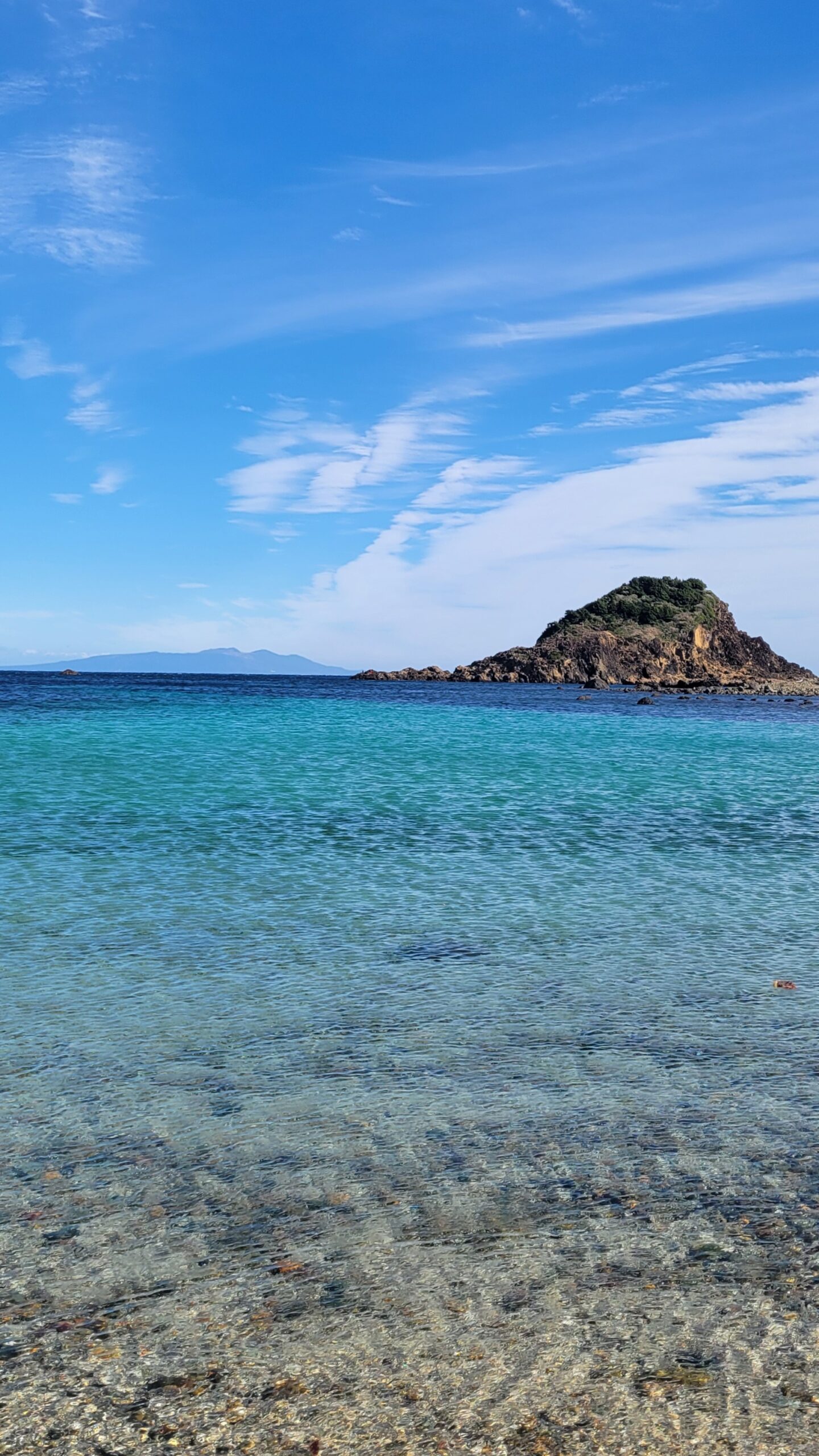 この写真は、爪木崎(下田)で、透明度の高い海の色や穏やかな波の様子が分かるように撮影したものです。
