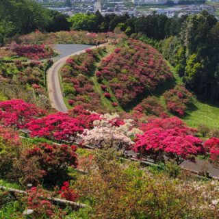 山の斜面を埋め尽くす色鮮やかなつつじと、山頂からの眺めが魅力の絶景スポットです。