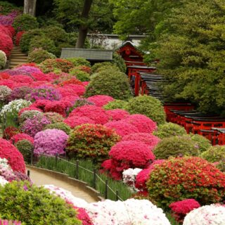 約100種3,000株のつつじが咲き誇り、社殿とともに和の美しさを楽しめる名所です。