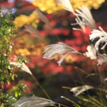 ススキは、秋を象徴する植物として古くから親しまれており、黄金色に輝く穂が風に揺れる姿は風情豊かな日本の秋の風景を作り出します。9月から11月にかけて見頃を迎え、特に夕陽に照らされたススキの穂は、輝くような美しさを放ちます。広がるススキの野原はどこか懐かしさを感じさせ、秋の散策や写真撮影にぴったりのスポットです。風が吹くたびにサラサラと音を立てるススキの風景は、心を穏やかにし、秋の静けさを感じさせてくれます。