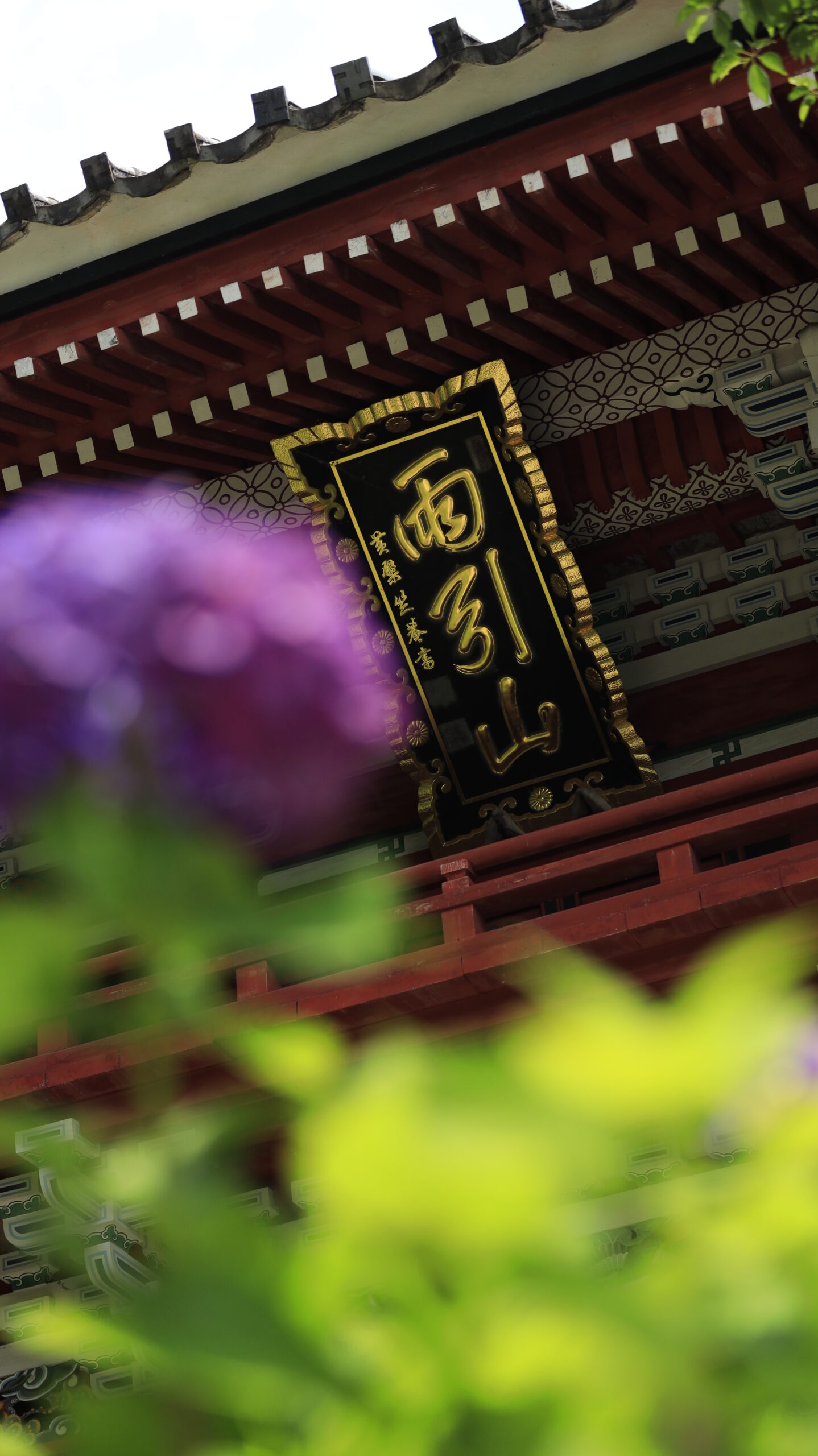 2025年 雨引観音(雨引山楽法寺)|紫陽花と建物の構図 この写真は、雨引観音で、紫の紫陽花を斜め下から捉え、奥に見える建物と一緒に撮影した一枚です。 2025年2025年6月6月紫陽花花茨城県雨引観音(雨引山楽法寺)