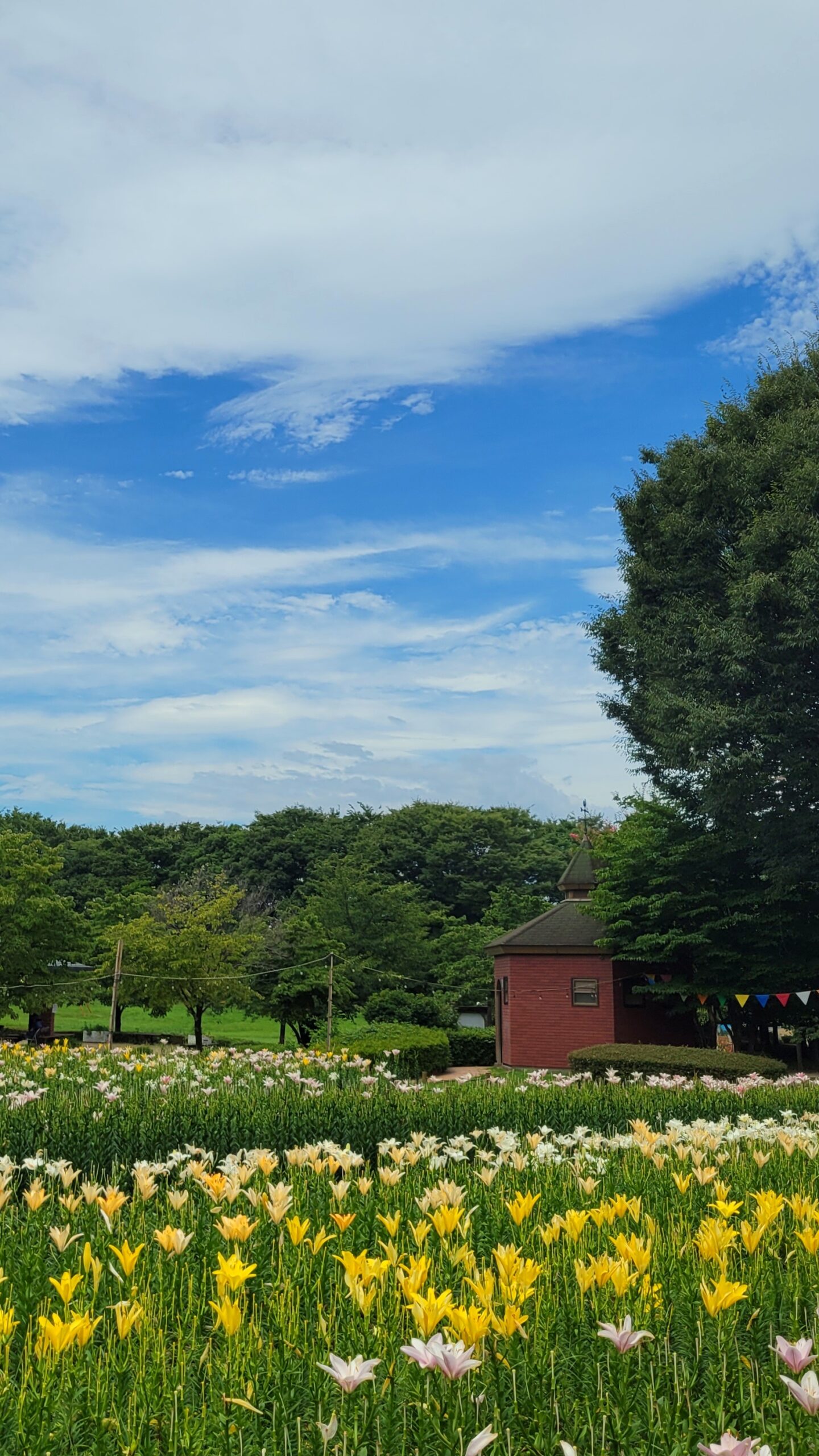 2024年 深谷グリーンパーク|深谷グリーンパークのカラフルな百合と夏の彩り 百合の撮影をしましたが、すでに花がかなり枯れており、数も少なくなっていました。建物、百合、旗を一緒に写真に収め、全体的な雰囲気を表現しようと思いました。 2024年2024年7月7月公園・テーマパーク・建物埼玉県深谷グリーンパーク百合(ユリ)花