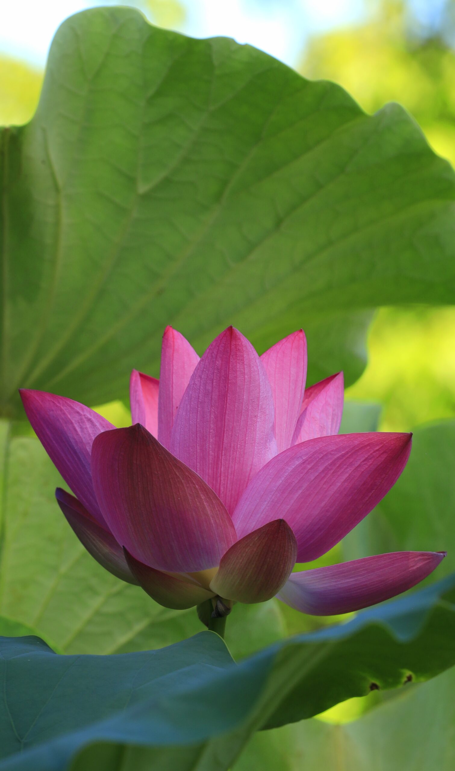 2025年 大船フラワーセンター|光をまとう蓮の繊細な表情 この写真は、大船フラワーセンターで、開花途中の蓮の花を横から捉え、透ける花びらに注ぐ光を活かして繊細な雰囲気を描写した写真です。 2025年2025年7月7月大船フラワーセンター神奈川県花蓮