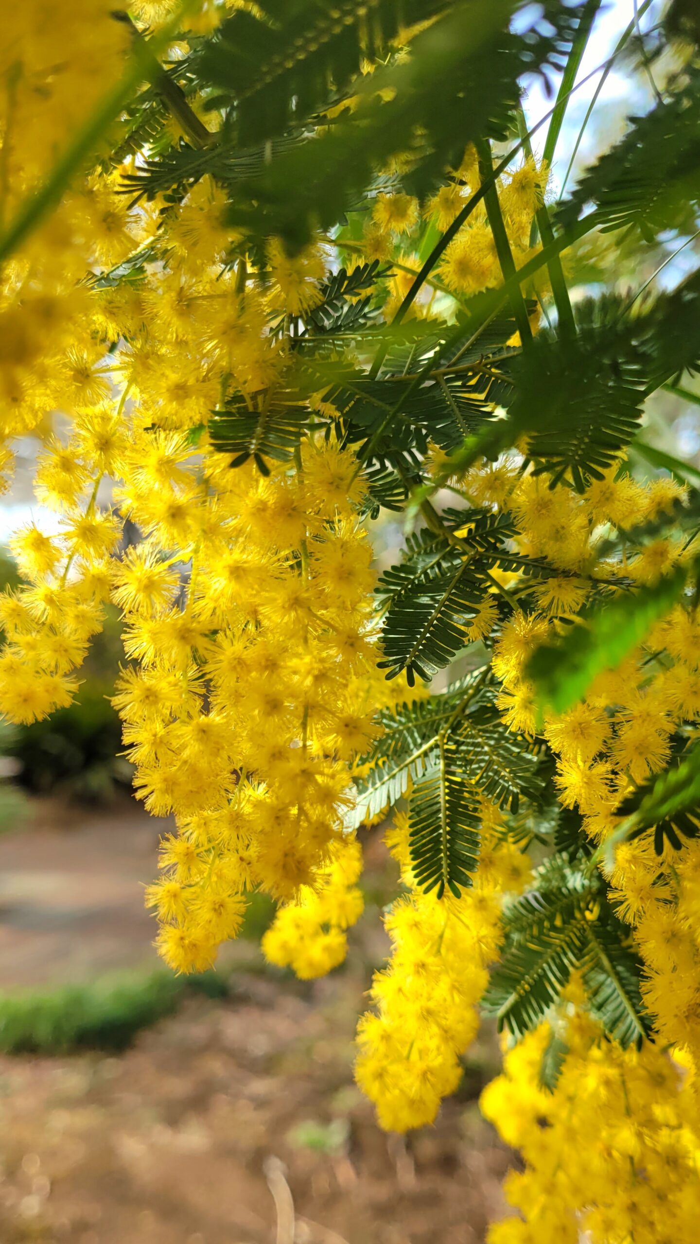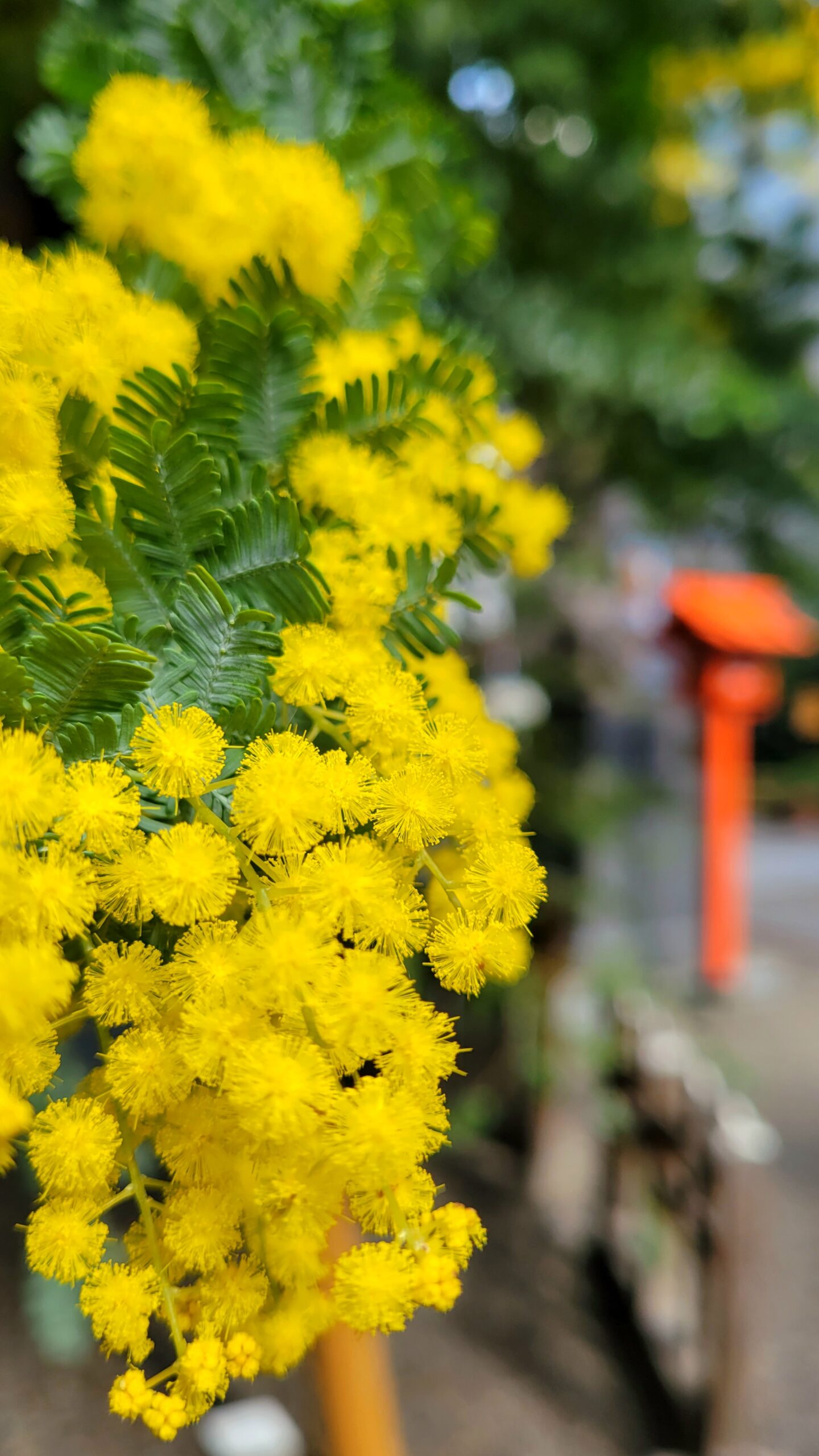 2025年 ラ チッタデッラ|ふんわり広がるミモザのボリューム感 この写真は、少し引いた視点からミモザを撮影し、木全体のふんわりとしたボリューム感や周囲の雰囲気が伝わるように構図を工夫しました。 2025年2025年3月3月ミモザラチッタデッラ神奈川県花