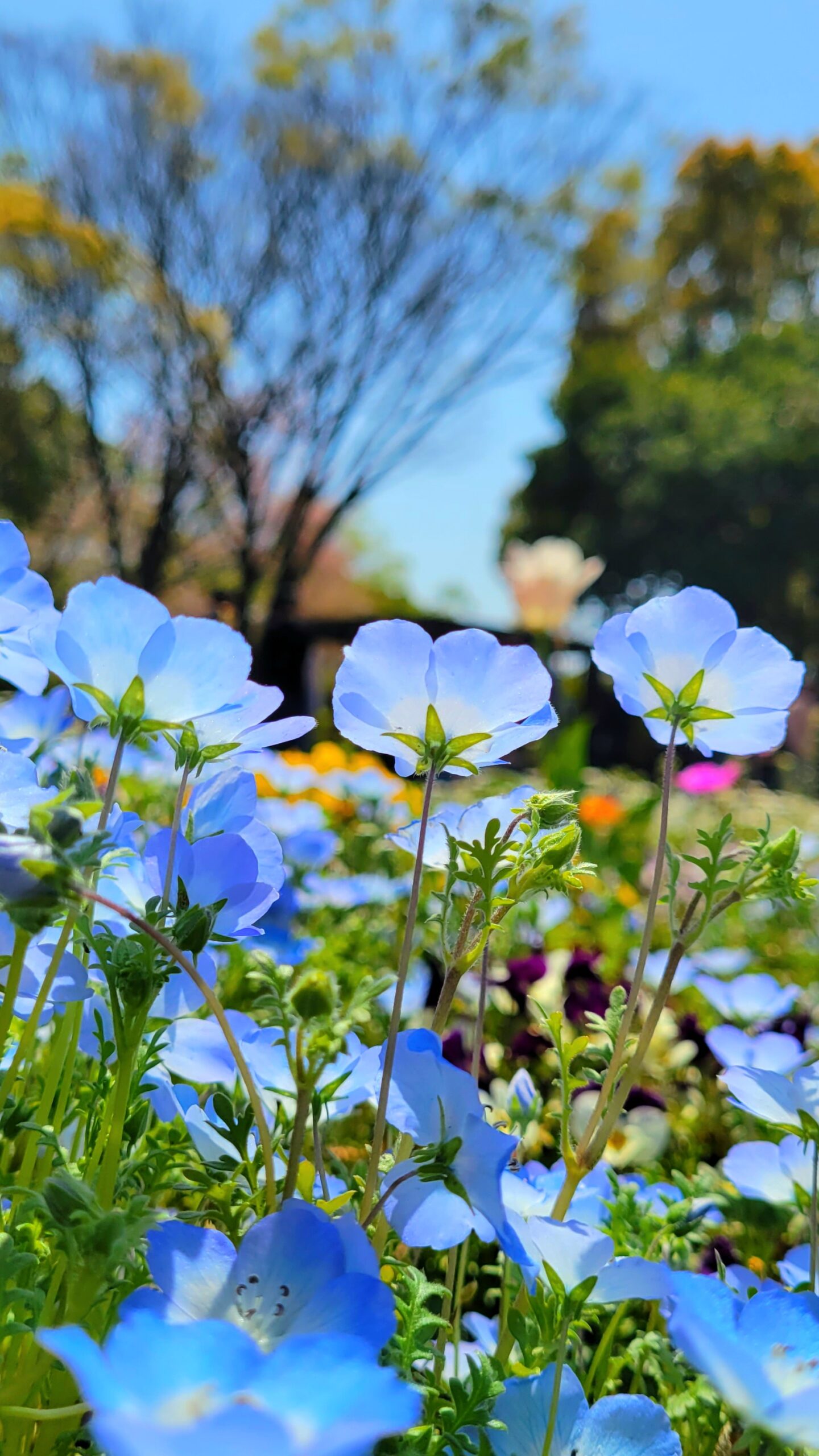 2024年 国営昭和記念公園|春の訪れを告げるネモフィラの花壇 – 国営昭和記念公園の魅力 東京都立川市にある四季折々が楽しめる人気の昭和記念公園、入口花壇で見つけた形の良いネモフィラ 2024年2024年4月4月ネモフィラ公園・テーマパーク・建物国営昭和記念公園東京都花