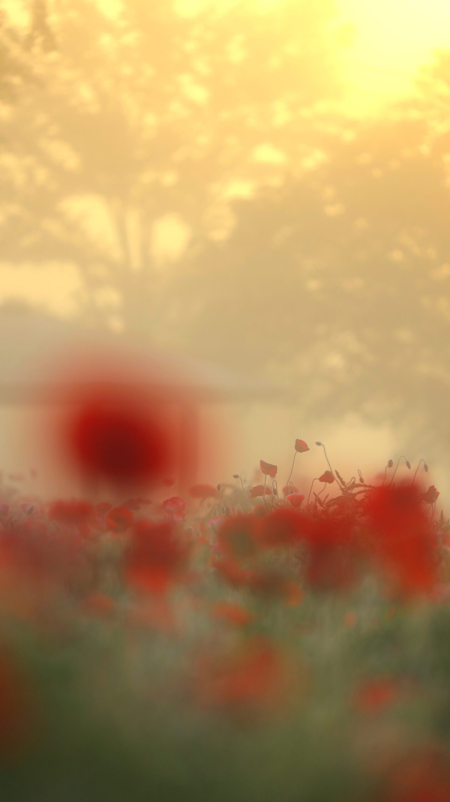 2025年 あけぼの山農業公園|朝日の中で溶け合う霧と花 この写真は、あけぼの山農業公園にて、朝日が昇る瞬間、霧とポピーが柔らかく溶け合うような情景を撮影したものです。 2025年2025年5月5月あけぼの山農業公園ポピー千葉県花