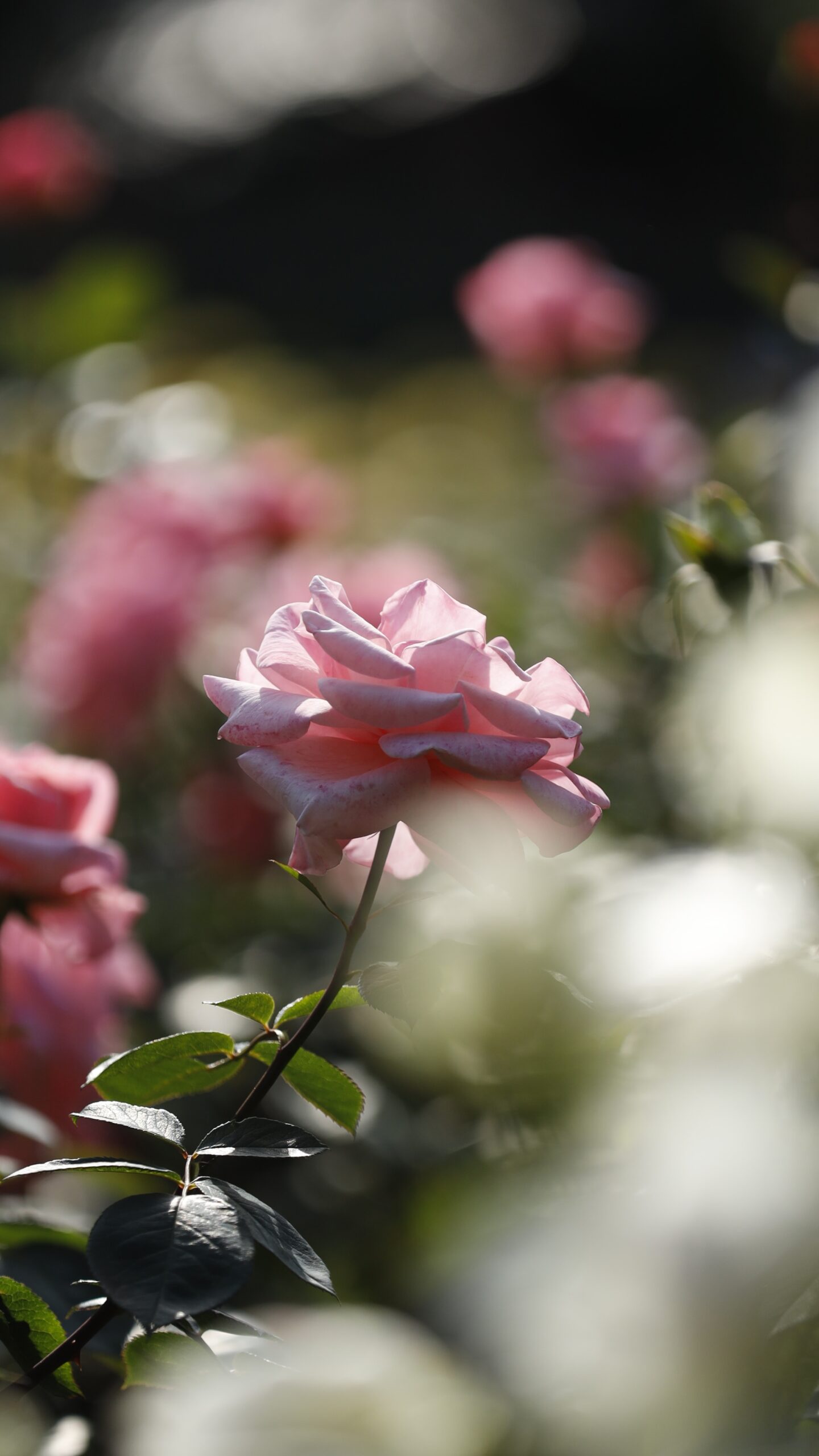 2025年 横浜イングリッシュガーデン|光を受けるやさしいバラ この写真は、横浜イングリッシュガーデンのバラに、うっすらと柔らかな光が差し込む瞬間をとらえ、やさしい印象に仕上げた一枚です。 2025年2025年5月5月横浜イングリッシュガーデン神奈川県花薔薇
