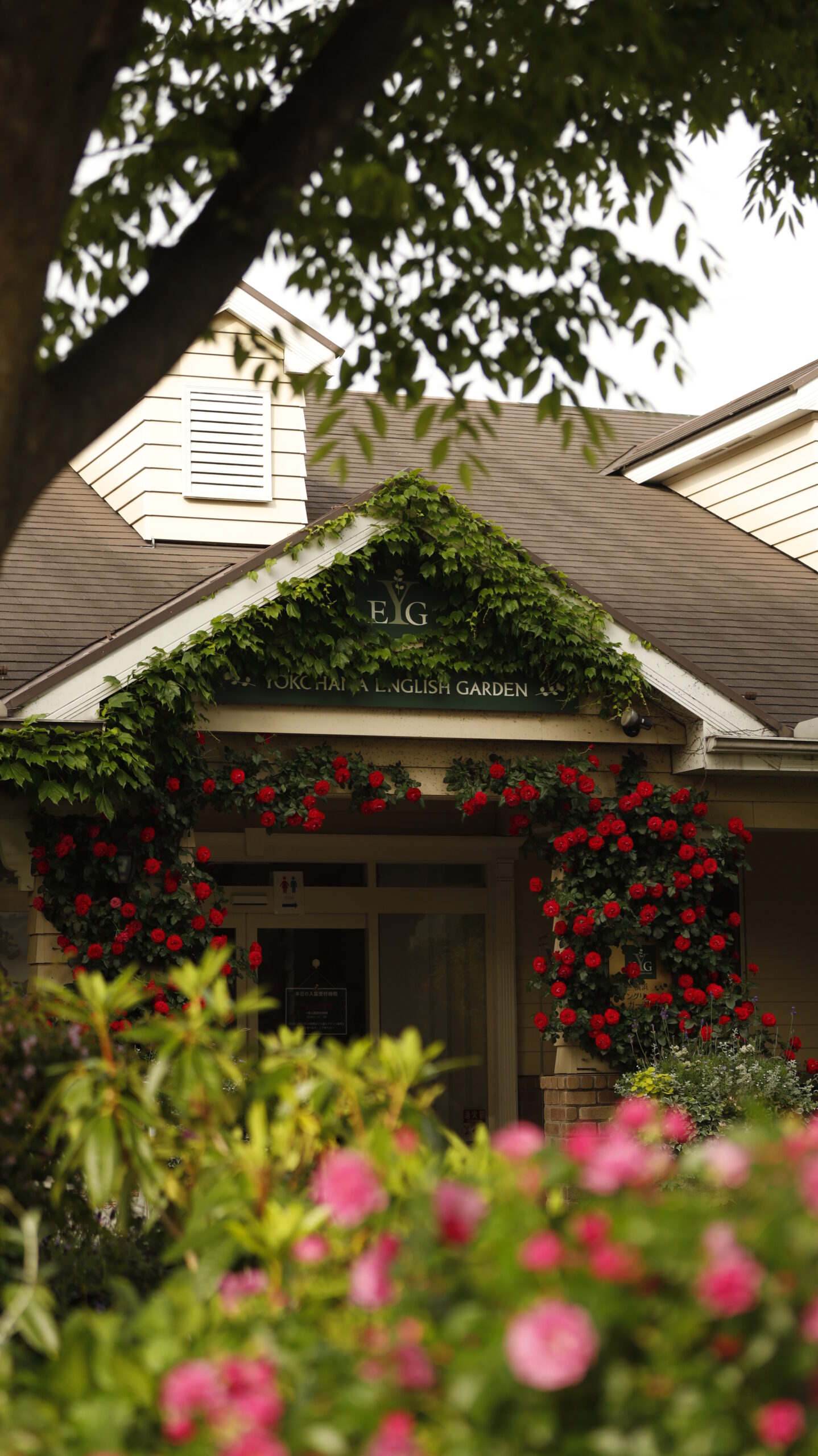 2025年 横浜イングリッシュガーデン|奥行きを感じる入口のバラ この写真は、横浜イングリッシュガーデンの入口に咲く美しいバラを、あえて奥にピントを合わせることで奥行きを感じられるように撮影したものです。 2025年2025年5月5月横浜イングリッシュガーデン神奈川県花薔薇