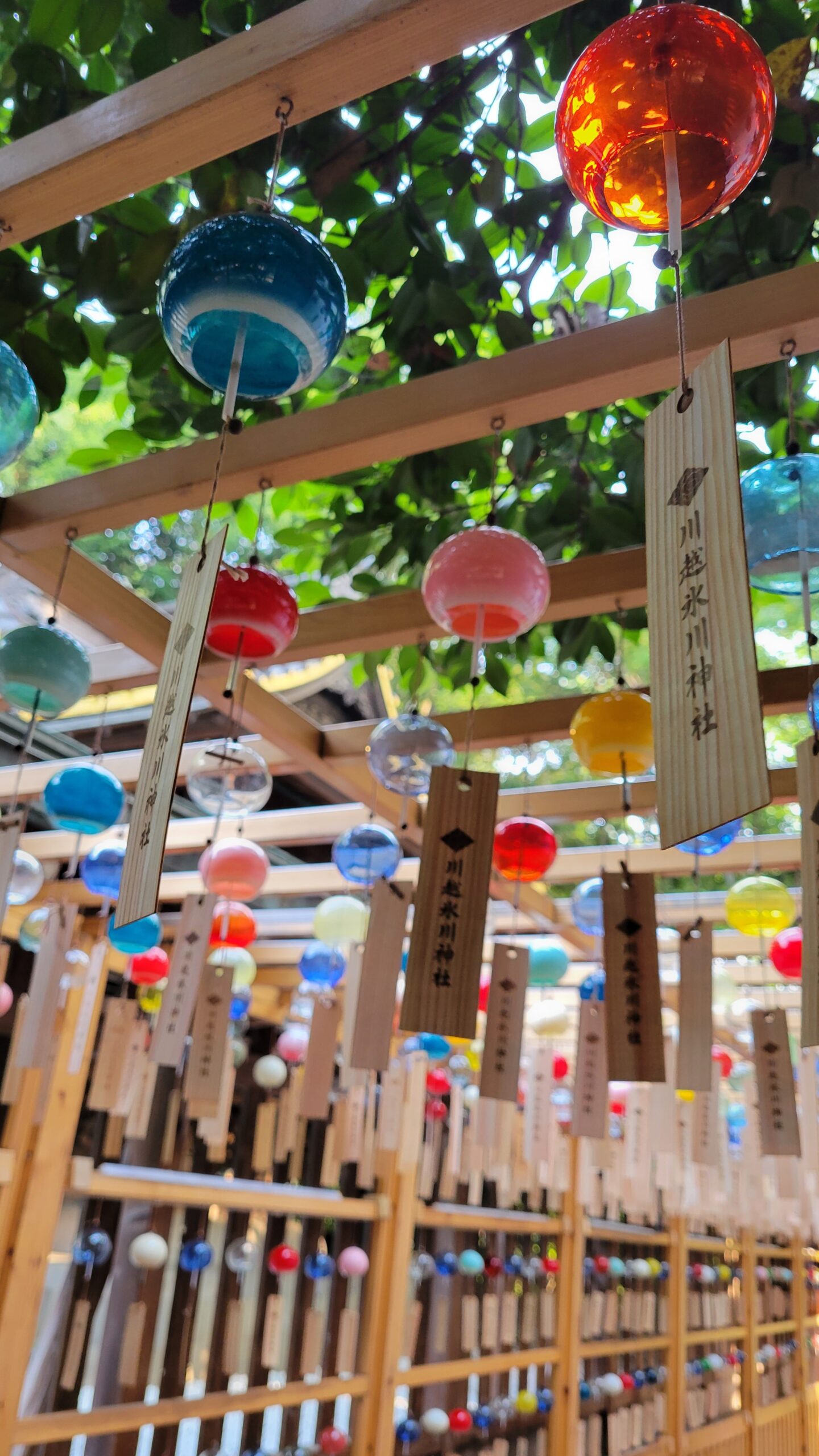 2024年 川越氷川神社|夏の風物詩川越氷川神社で感じる風鈴の涼音 川越氷川神社で撮影した風鈴。色とりどりの風鈴が風に揺れ、涼やかな音色を奏でます。夏の訪れを感じさせる美しい風景が広がり、訪れる人々に癒しを提供します。 2024年2024年7月7月埼玉県川越氷川神社神社・お寺・お城綺麗な景色風鈴