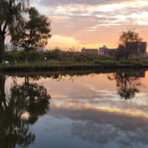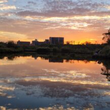 この写真は、海ほたるで早朝、日の出前の静けさの中、これから太陽が昇ってくる方向を切り取ったものです。