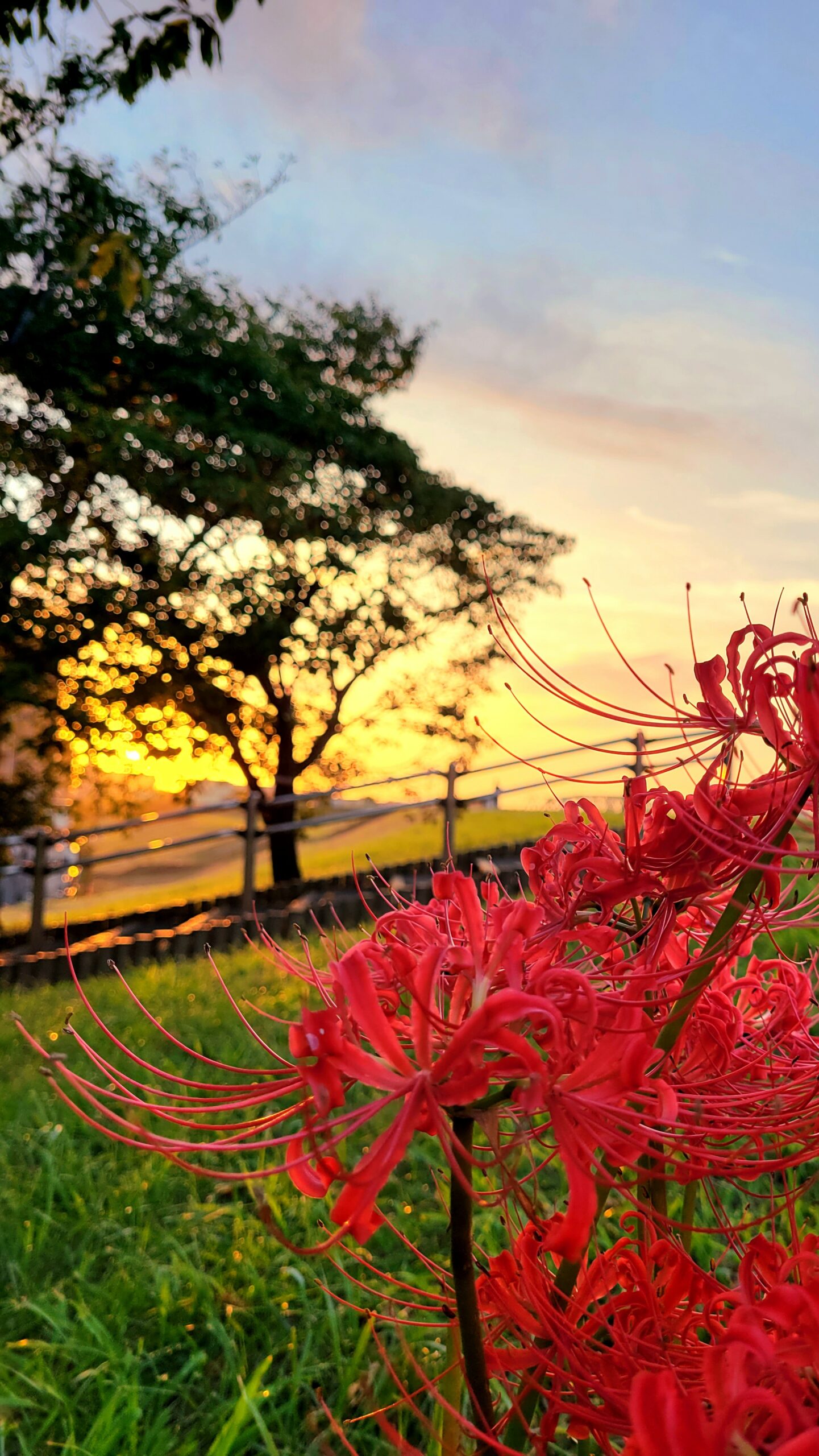2023年 荒川土手|秋の光と曼殊沙華!荒川土手の幻想的な朝 この写真は、土手に咲く曼殊沙華が朝日を浴びる様を撮影してみました。 2023年2023年9月9月埼玉県曼殊沙華(彼岸花)朝焼け朝焼け・夕焼け花荒川土手