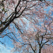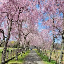 この写真は、山中湖花の都公園で、見事に咲き揃った八重枝垂れ桜並木を撮影し、春の華やかな雰囲気をそのまま切り取ったものです。