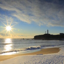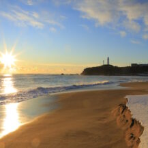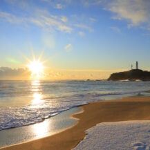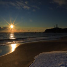 関東で最も早く朝日を迎える場所として知られる犬吠埼は、日の出撮影をするならぜひ訪れたい定番スポットです。太平洋の水平線から力強く昇る朝日は遮るものが少なく、海と空がゆっくりと明るさを増していく様子を正面から捉えることができます。灯台や岩礁をシルエットとして取り入れることで、犬吠埼らしい物語性のある構図が作りやすく、朝焼けから日の出までの色の変化もじっくり楽しめます。冬場は特に空気が澄み、光の輪郭がはっきりと出やすいため、荘厳で印象的な一枚を狙えるのも魅力です。新年の初日の出はもちろん、普段の朝でも特別感のある撮影ができる、日の出撮影にぴったりの場所です。