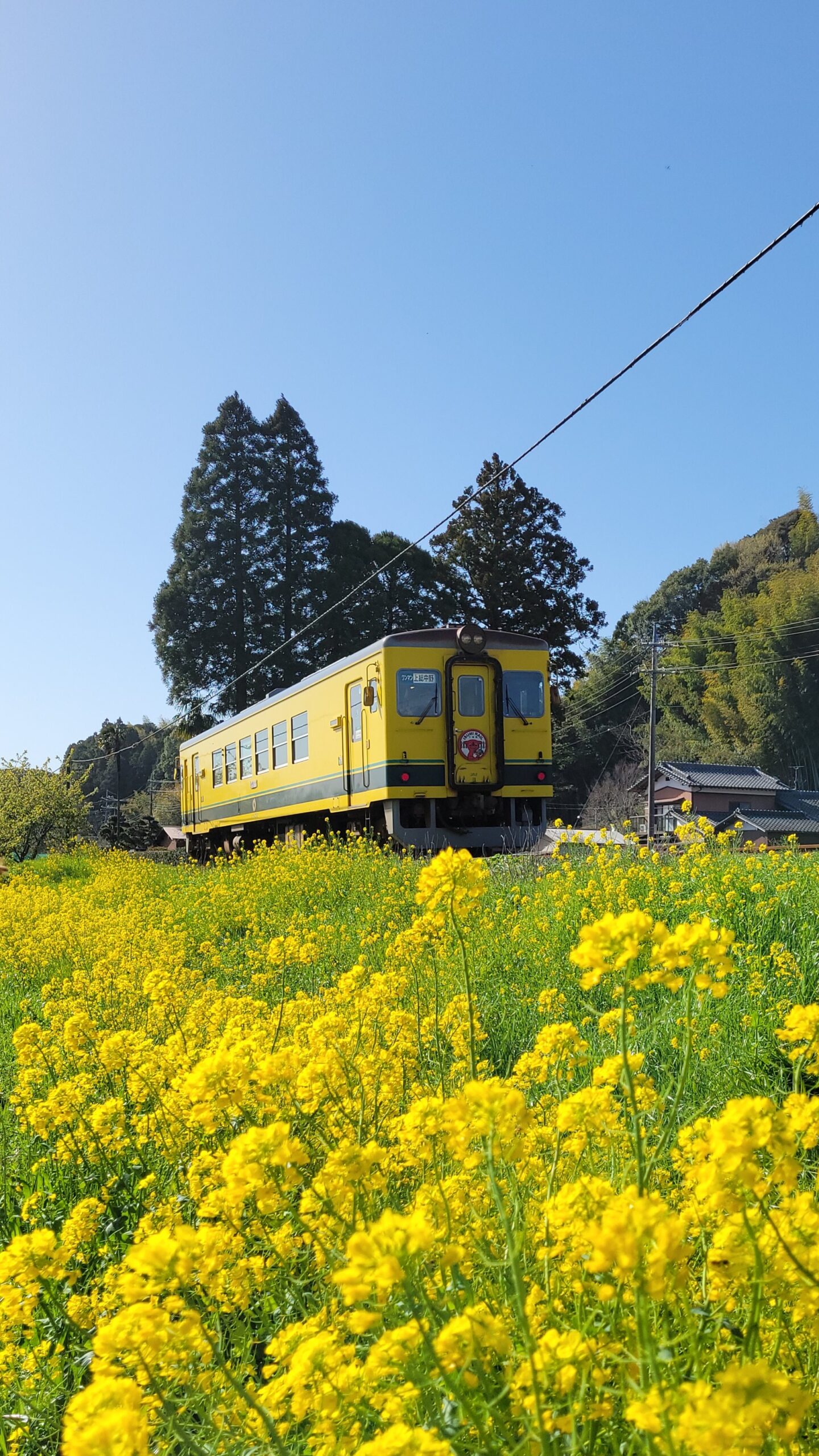 いすみ鉄道の撮影は、特に春に訪れるのがおすすめです。春になると、線路沿い一面に広がる菜の花畑が、黄色の鮮やかな絨毯を作り出します。その中をゆっくりと走る列車の姿は、まさに絵画のような美しさです。この時期、いすみ鉄道は多くの撮影愛好家が訪れる人気のスポットとなります。列車と菜の花のコントラストが生み出す風景は、どこを切り取っても美しく、まさに春ならではの光景です。早朝や夕方の柔らかな光が差し込む時間帯には、さらに幻想的な写真が撮影できるでしょう。また、ローカルな雰囲気漂う駅舎や、田園風景の中を走る列車の姿は、春の自然とともに、心を癒してくれます。春の訪れを感じながら、いすみ鉄道で素敵な写真を撮りに出かけてみてください。