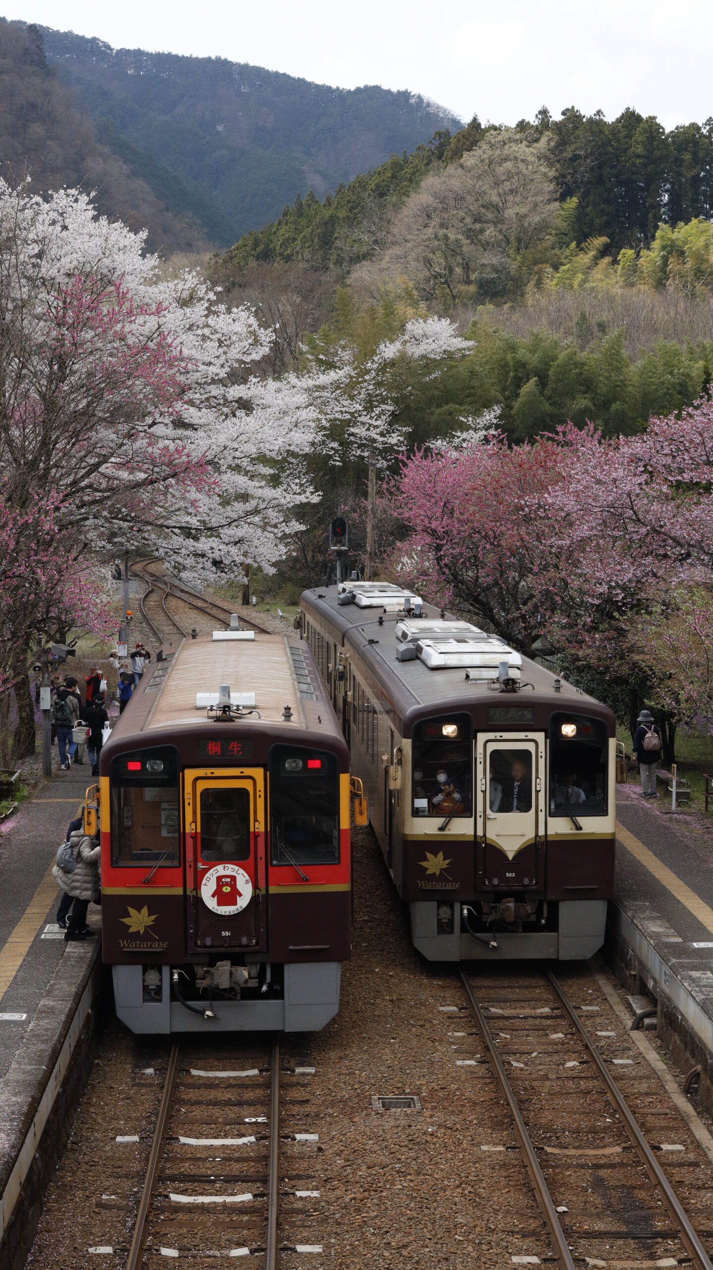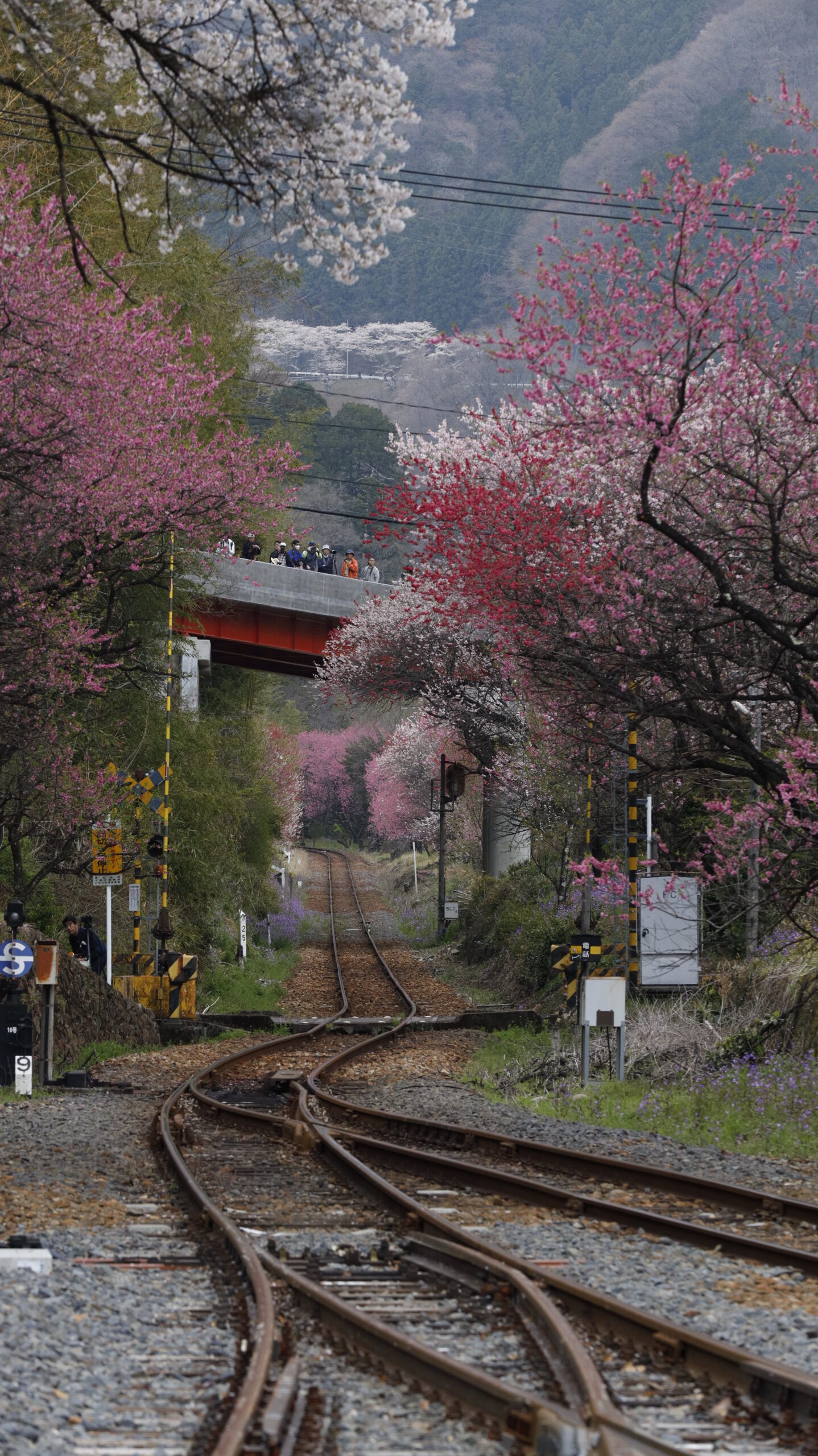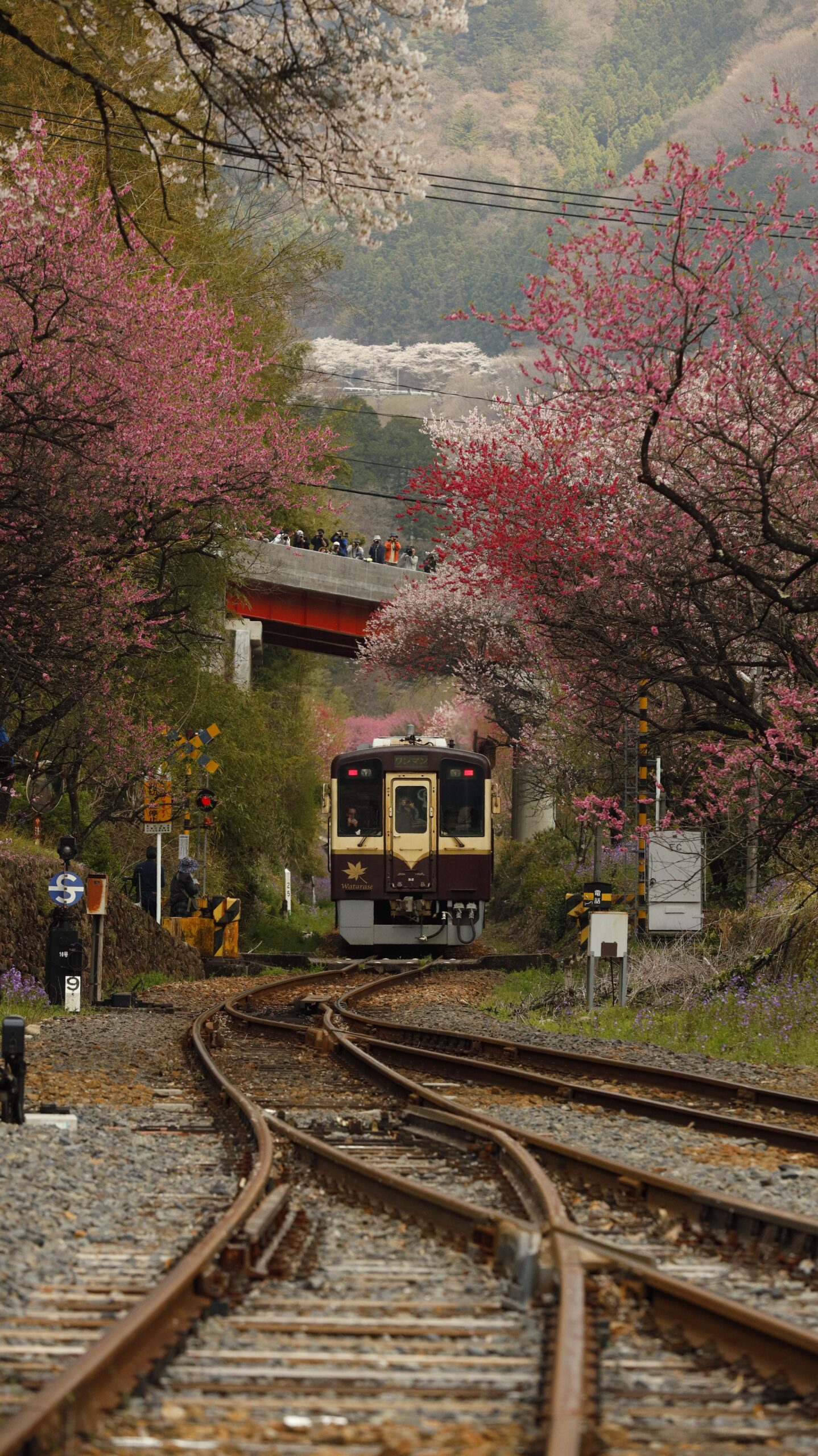 群馬県みどり市にある「わたらせ渓谷鐵道・神戸駅」では、春になると駅のホームや線路沿いに色とりどりの花桃が咲き誇ります。濃いピンクや白、淡い桃色が美しく混ざり合い、ノスタルジックな駅舎との組み合わせは、どこか懐かしく心温まる風景を演出してくれます。列車と花桃を一緒に写し込めば、鉄道好きにもたまらない一枚に。満開の時期を狙って、ぜひ足を運んでみてはいかがでしょうか。