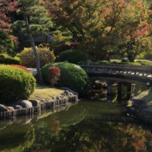 春には、全国的にも有名な梅林が一斉に咲き誇り、ふんわり漂う香りと柔らかな光の中で、白・桃・紅の梅が重なり合う優美な世界が広がります。一本一本の表情が違い、逆光で透ける花びらや、青空とのコントラストなど、撮影ポイントが無限に見つかるのが魅力です。そして秋には、もみじ谷を中心に紅葉が深く色づき、谷に差し込む光が赤や橙の葉をふわりと照らして、まるでスポットライトを浴びたような幻想的な景色に。見上げる透明感あるモミジ、暗がりに浮かぶ赤い葉、池に映る秋色——同じ場所でも時間帯や角度によってまったく違う表情を見せてくれます。春の可憐さと秋のドラマチックな色彩美。