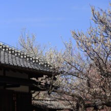 撮影のポイントは、歴史ある建物と梅の花を一緒に構図に入れて風情ある景色を表現したり、瓦屋根や廊下など建築のラインを活かして奥行きを出したり、逆光で梅の花びらが透けるような光を狙うことで、弘道館らしい落ち着いた雰囲気の写真に仕上げることです。