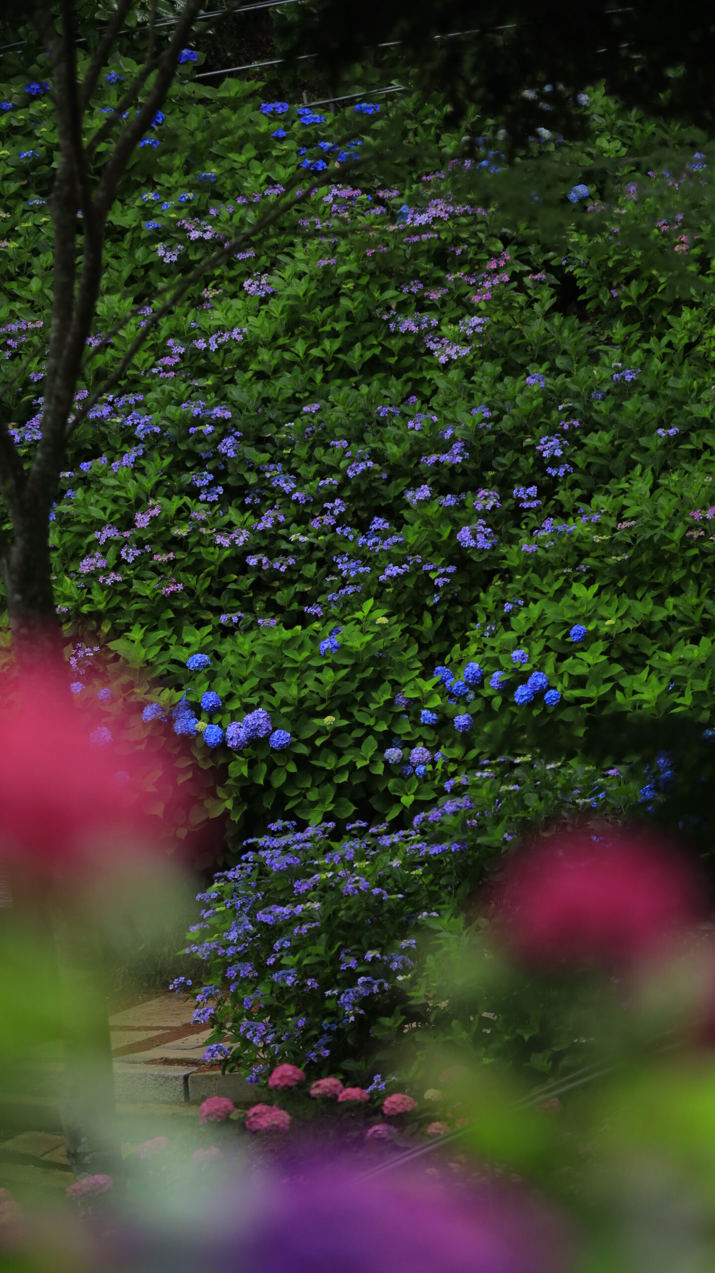 二本松寺の紫陽花は、圧巻の美しさを誇ります。特に、田んぼ沿いに広がる紫陽花の壁面と、山の斜面を彩る無数の紫陽花が見事で、まるで花の海に包まれているかのような感覚を味わえます。広大な境内にはさまざまな色と種類の紫陽花が咲き誇り、自然の美しさに心を奪われます。散策しながら、ぜひこの壮大な景色を写真に収めてみてください。