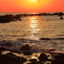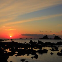 真鶴岬(三ツ石海岸)の日の出と岩礁を撮影