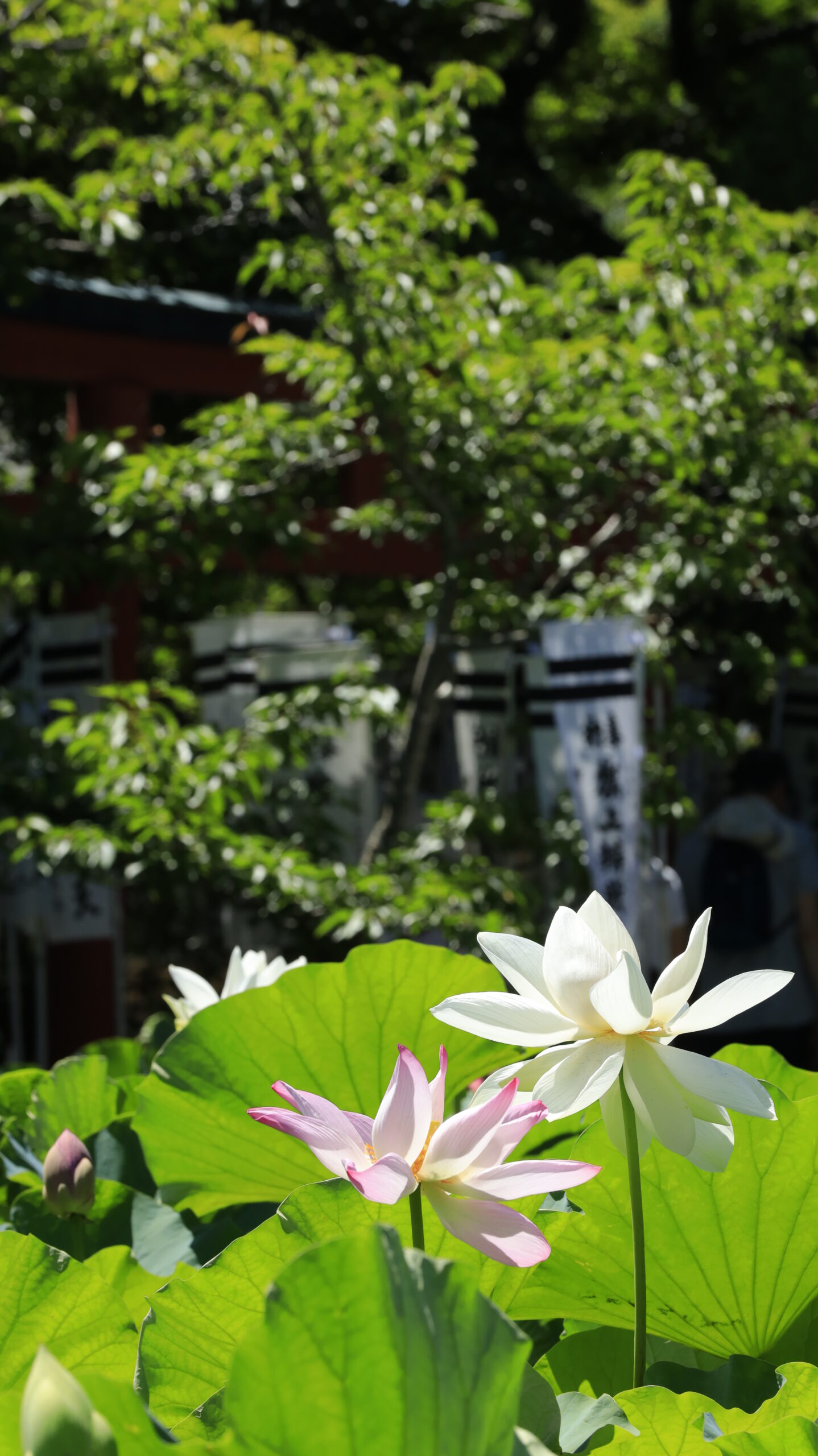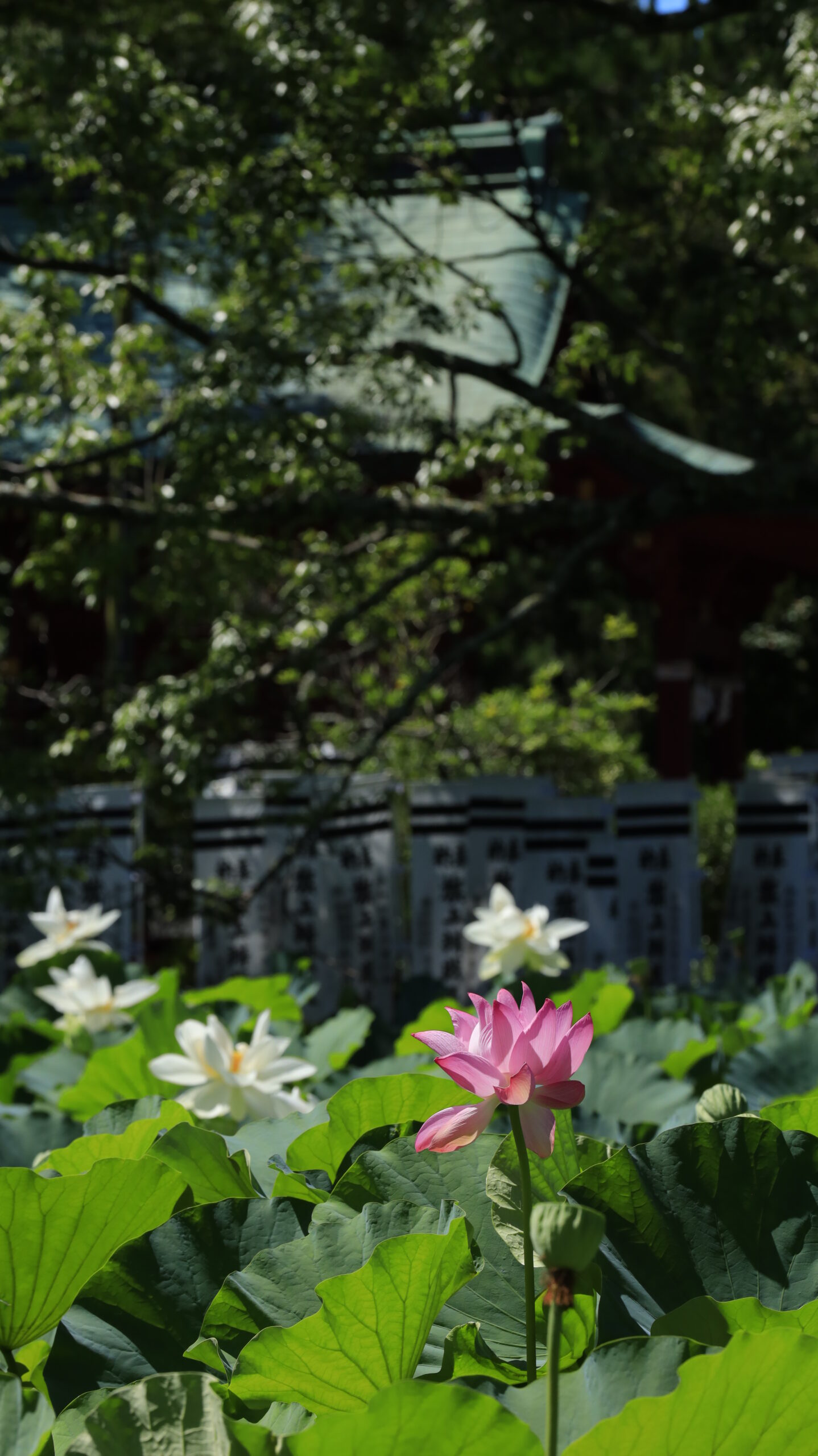歴史と自然が織りなす爽やかな風景に出会える鶴岡八幡宮は、鎌倉の中心に位置し、源頼朝ゆかりの神社として長い歳月を経た今も、多くの人々に親しまれています。朱塗りの社殿や堂々とした石段、静けさをたたえる柳原神池や源平池が、境内に落ち着いた風情を添えています。中でも夏の朝に見頃を迎える源平池の蓮の花は、季節の訪れを感じさせる美しい光景。大きな葉のあいだから顔をのぞかせる白や淡い桃色の蓮が、水面に凛と咲き、神聖な空間に清らかな彩りを添えてくれます。とりわけ早朝には、朝露に濡れた花々がひときわ輝きを放ち、静寂の中で心が浄化されるような時間を味わえます。
