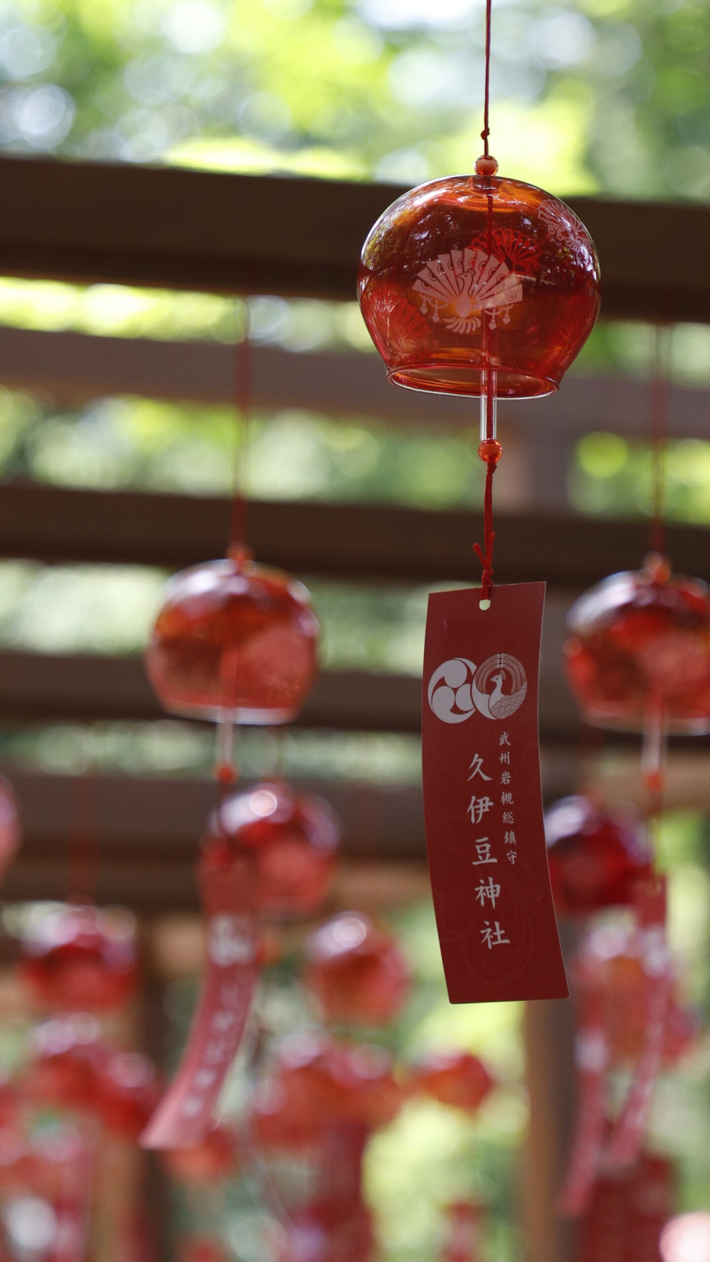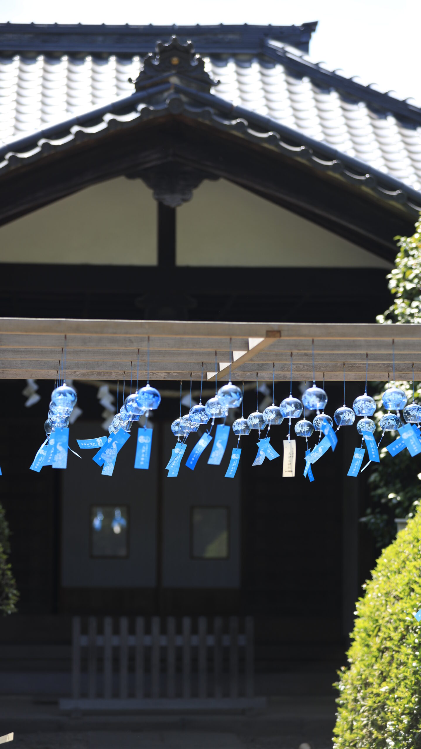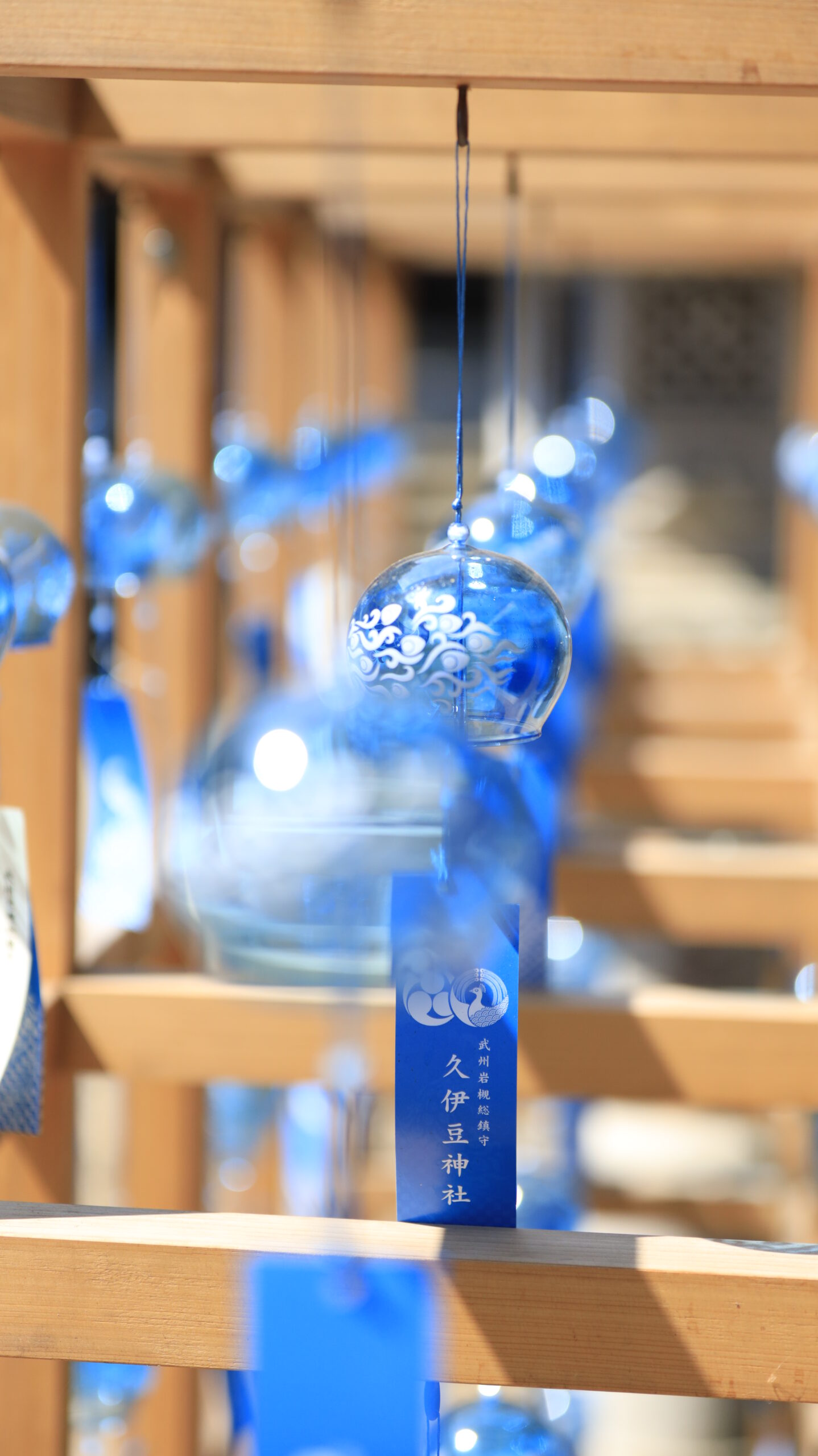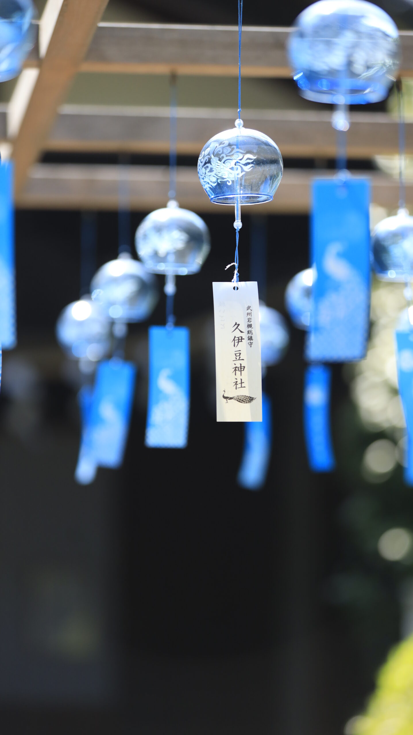 武州岩槻総鎮守・久伊豆神社では、夏の時期に風鈴が境内を美しく彩ります。赤と青の風鈴が揺れ、風に乗って涼やかな音色を響かせる様子は、見る人の心を和ませます。特に、色鮮やかな風鈴と神社の静かな景観のコントラストが美しく、写真撮影には最適です。透けるような風鈴越しに社殿や自然の緑を捉えることで、夏らしい情景を切り取ることができます。