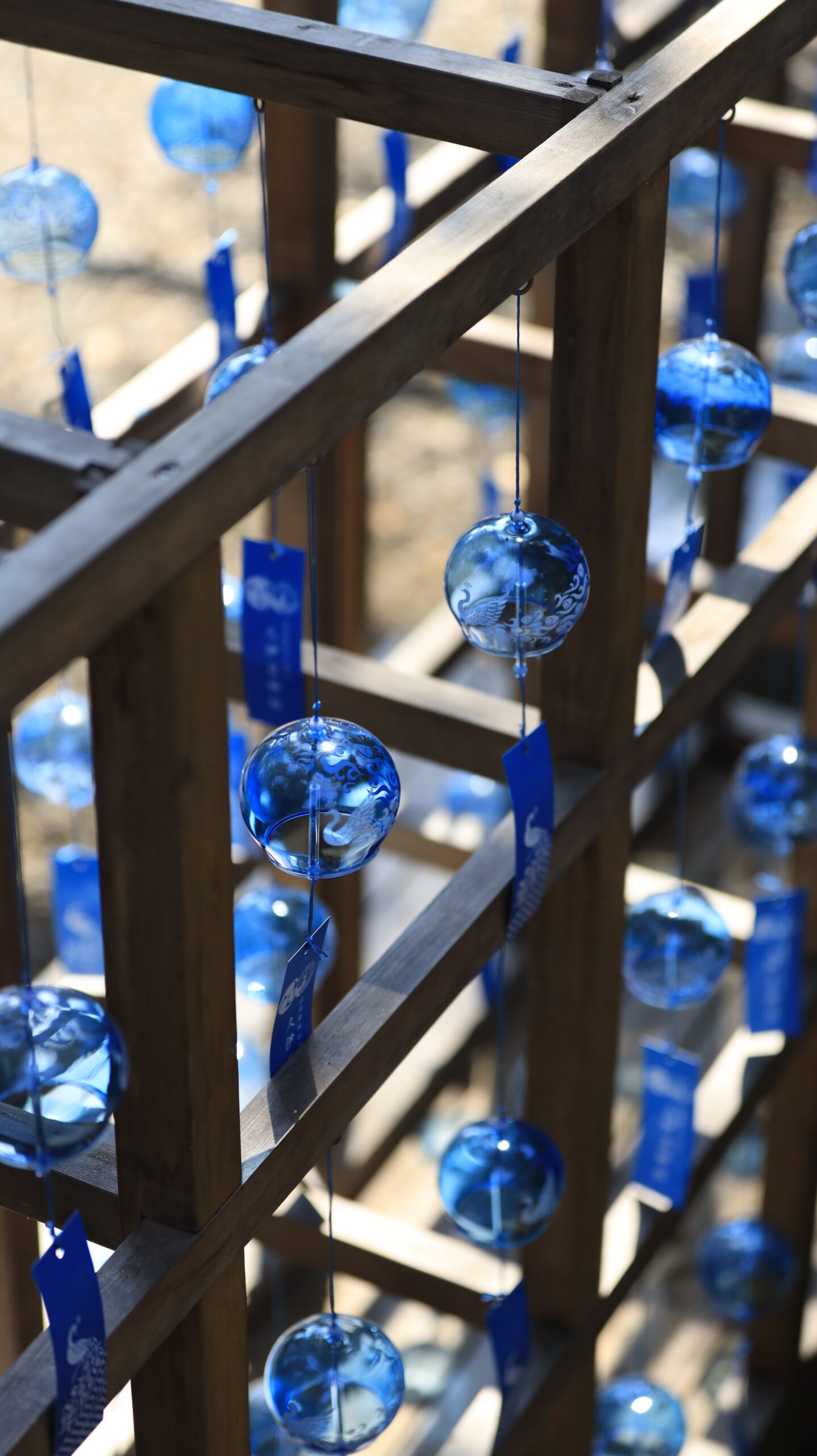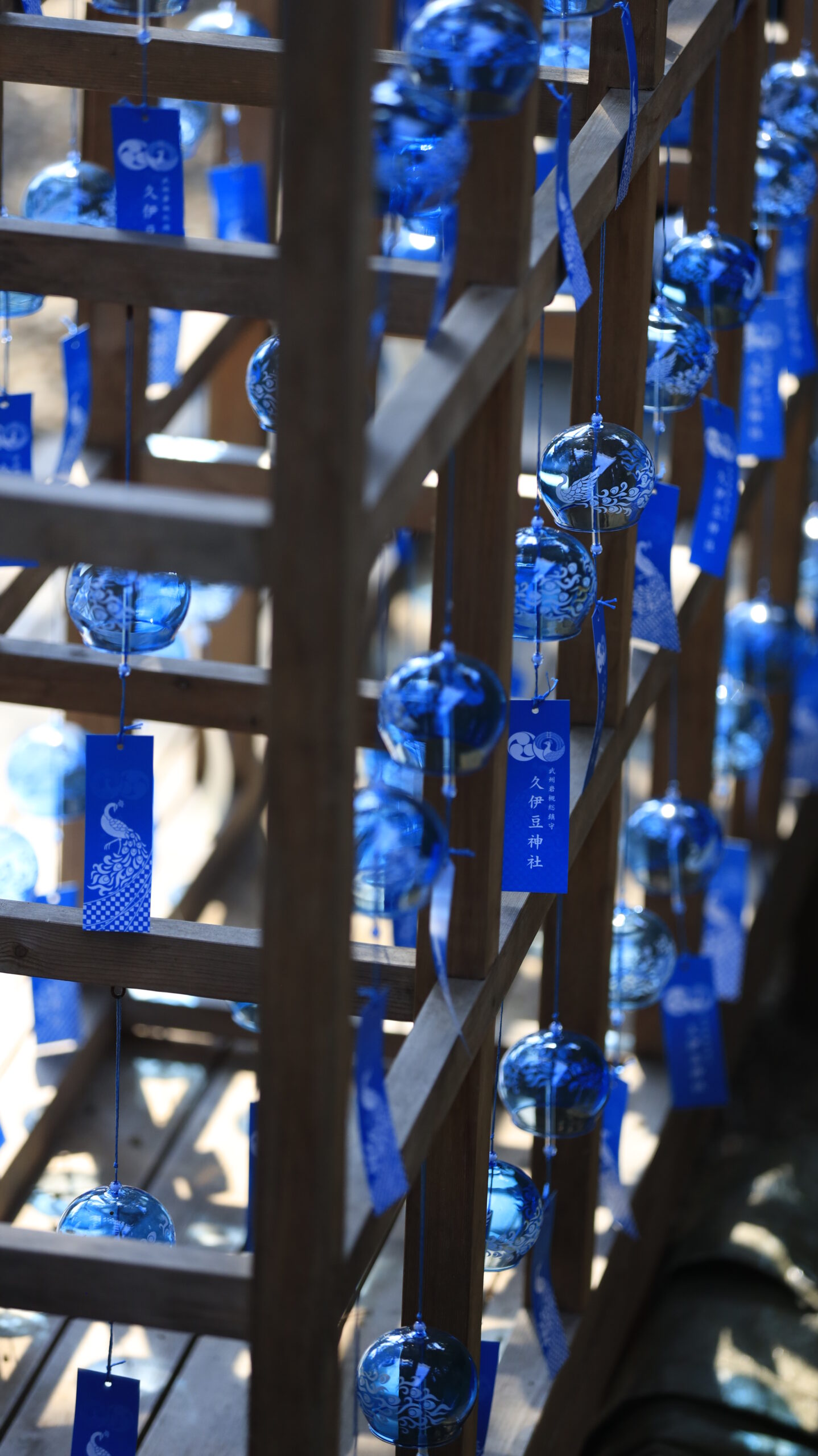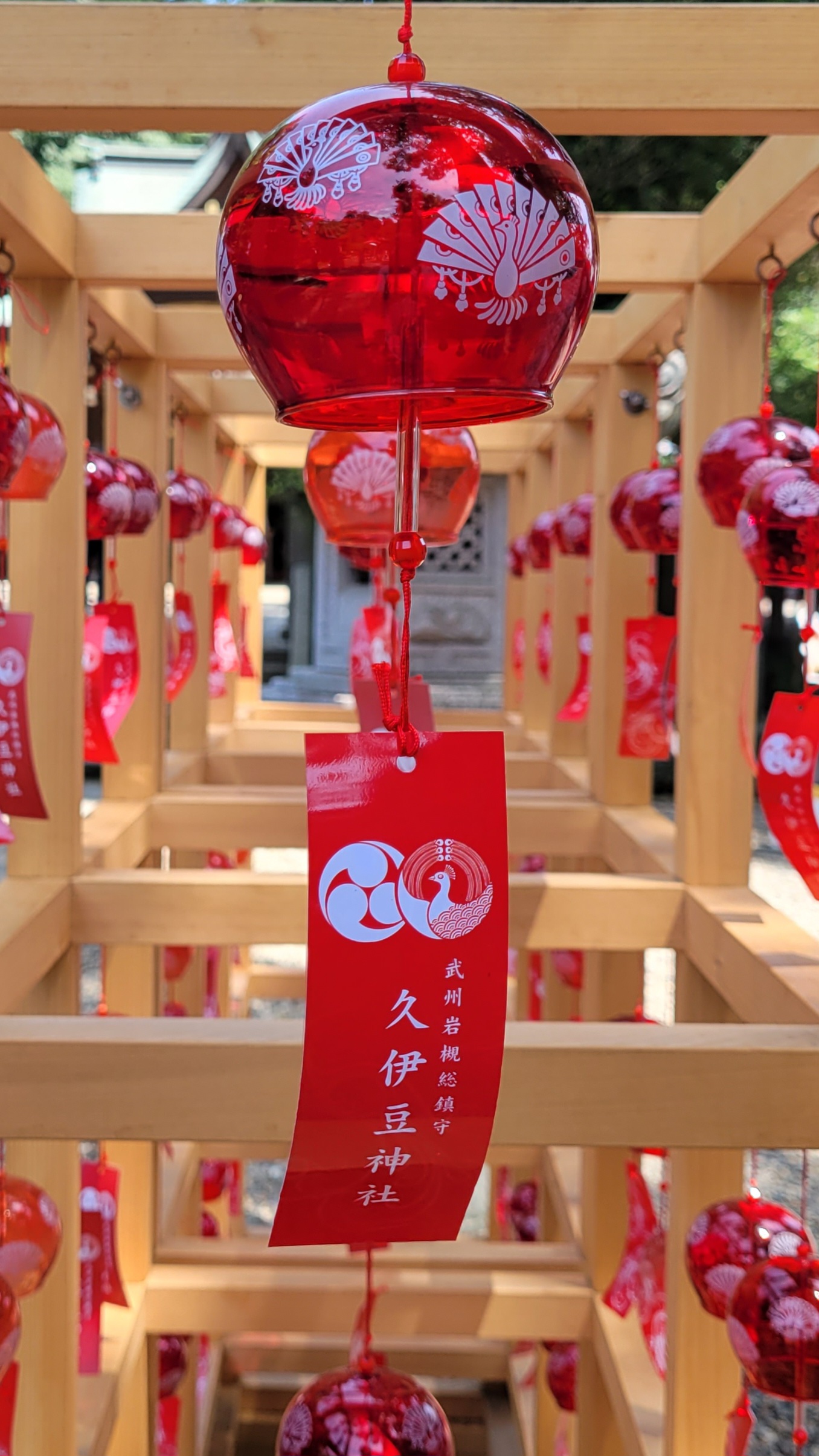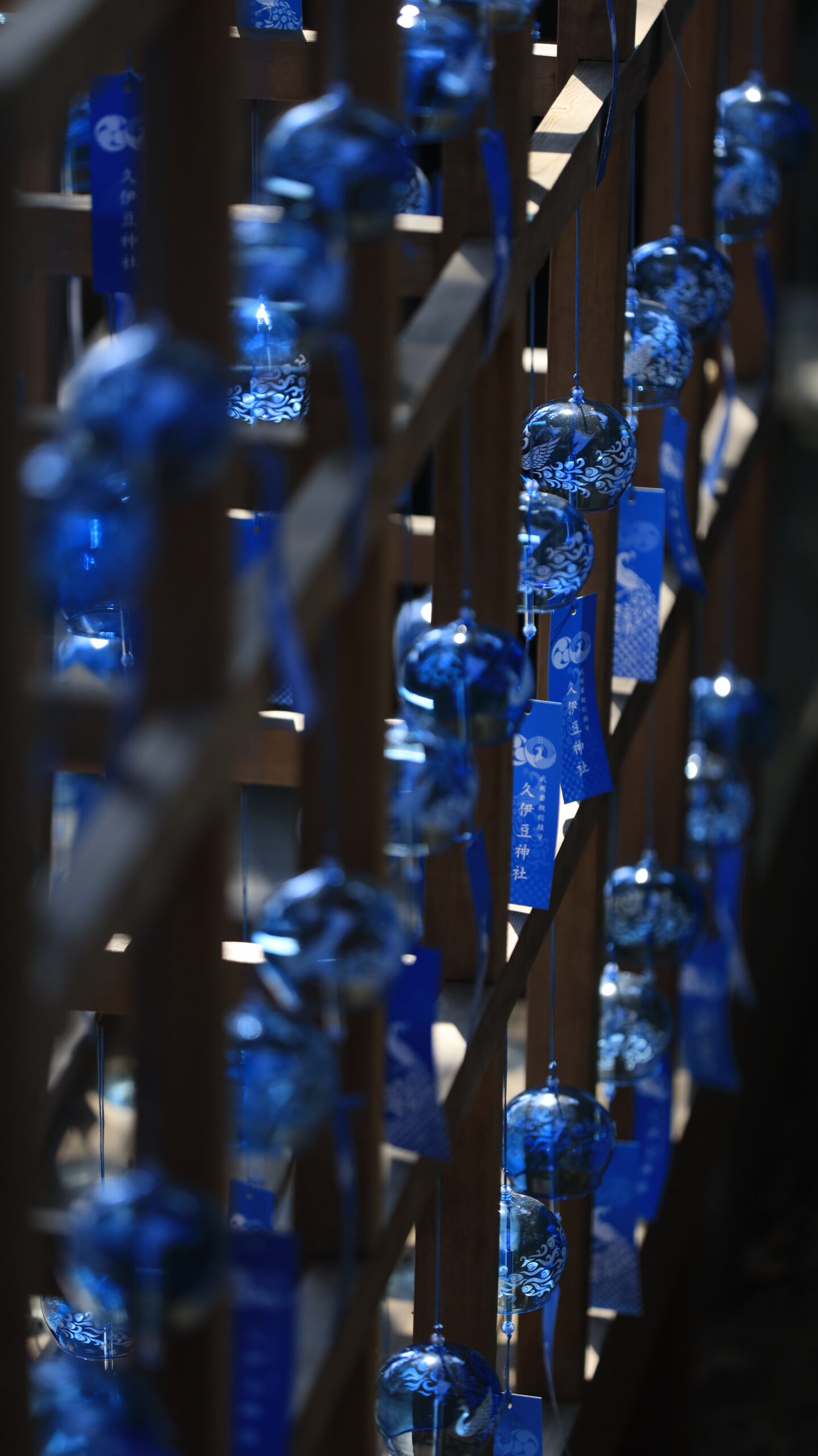 武州岩槻総鎮守・久伊豆神社では、夏の時期に風鈴が境内を美しく彩ります。赤と青の風鈴が揺れ、風に乗って涼やかな音色を響かせる様子は、見る人の心を和ませます。特に、色鮮やかな風鈴と神社の静かな景観のコントラストが美しく、写真撮影には最適です。透けるような風鈴越しに社殿や自然の緑を捉えることで、夏らしい情景を切り取ることができます。