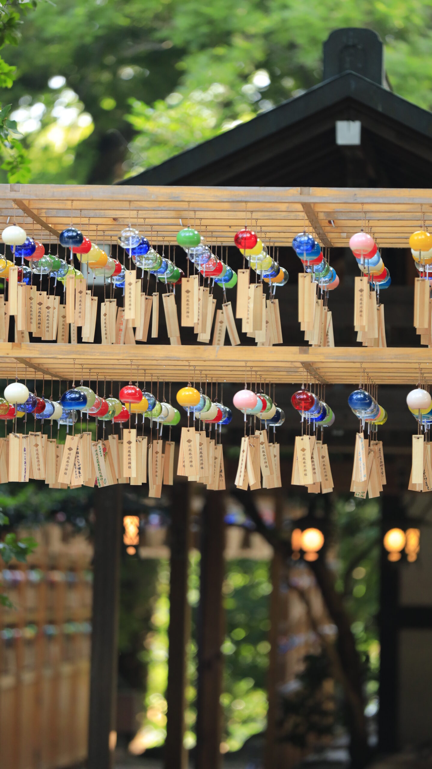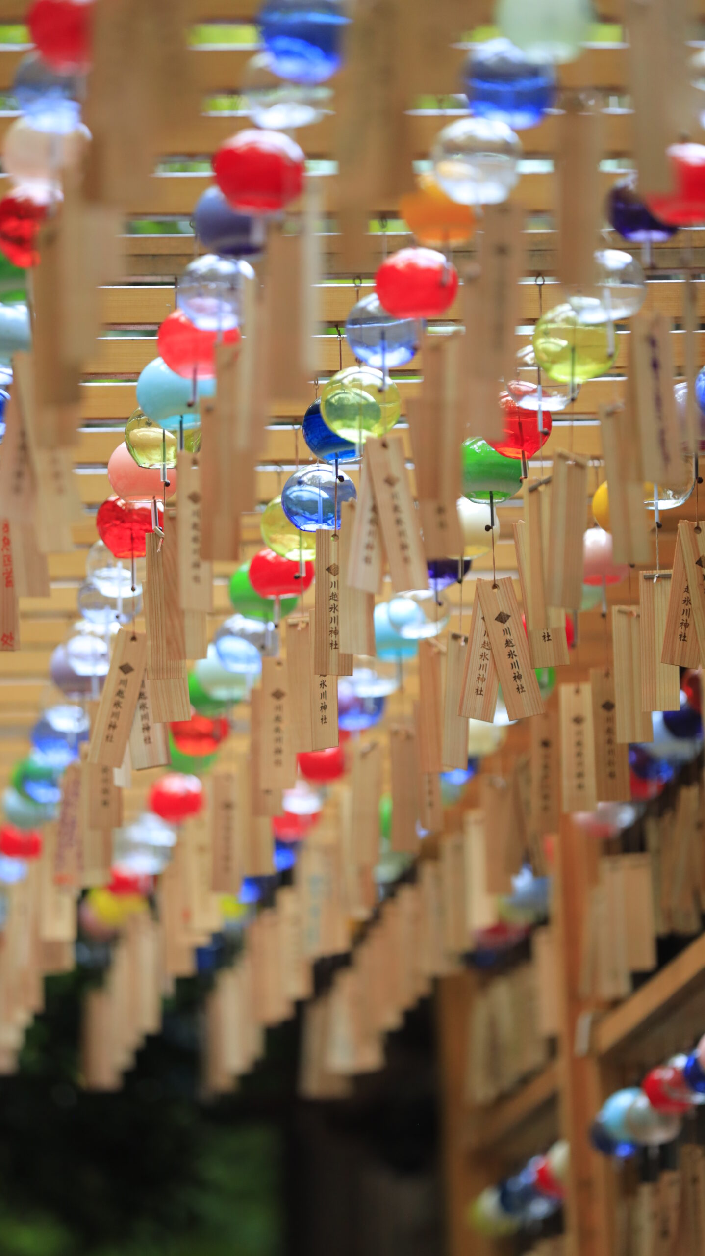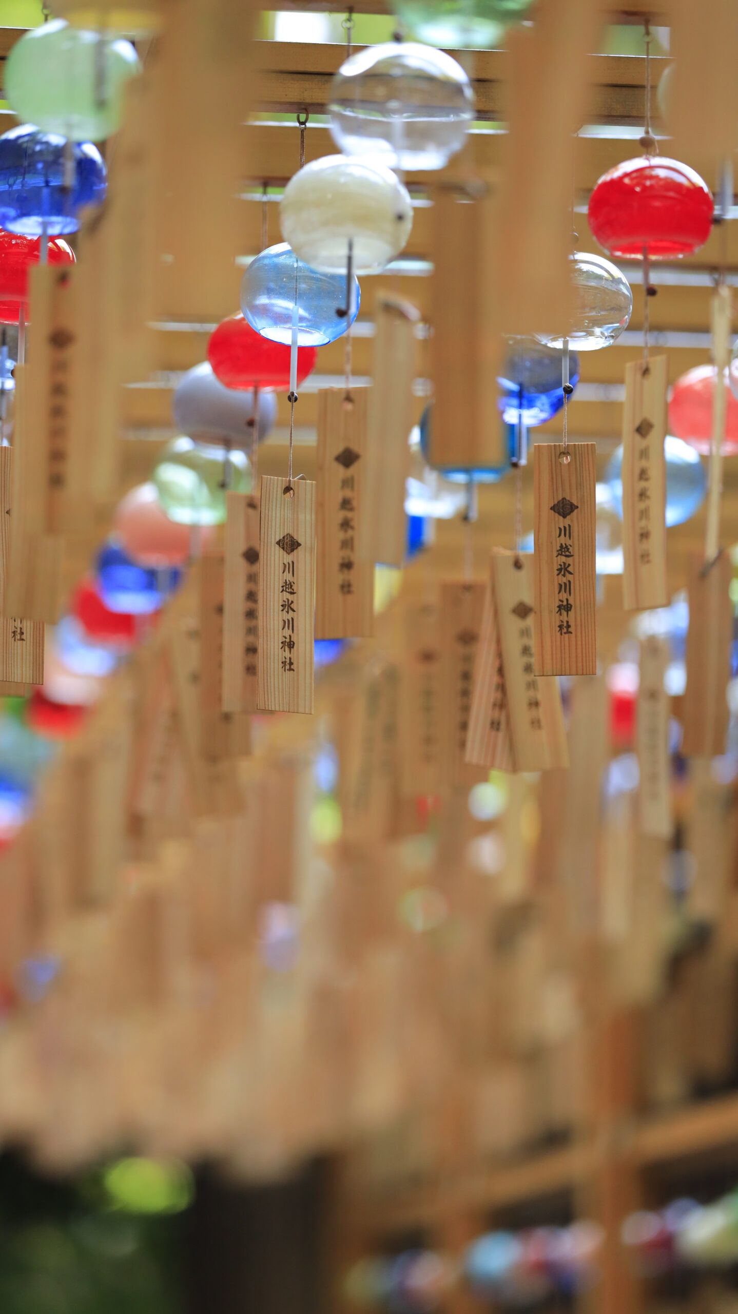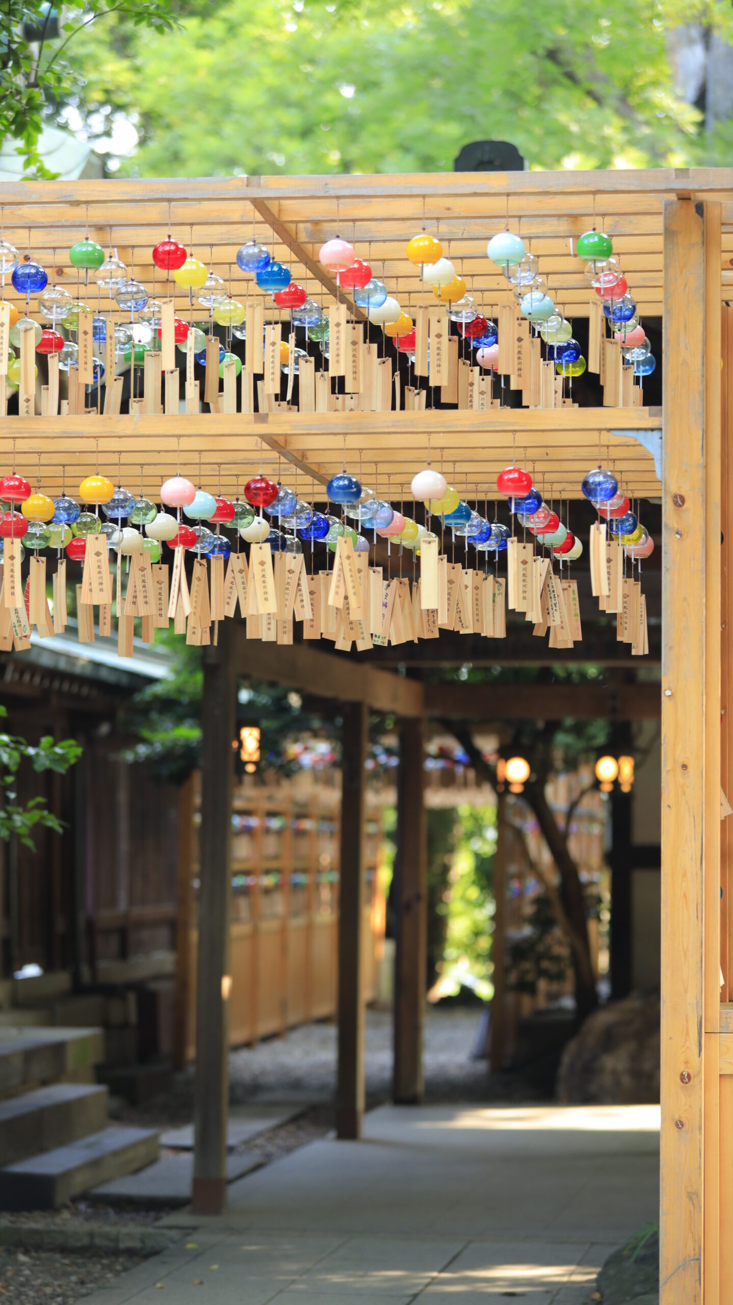 川越氷川神社では、夏の風物詩である風鈴が美しい音色とともに境内を彩ります。神社の参道に吊るされた色とりどりの風鈴が、風に揺られて優雅な音を奏でる光景は、まるで幻想的な世界に迷い込んだかのようです。この美しい風鈴の並ぶ風景を写真に収めて、夏の思い出を作りませんか?訪れるたびに新しい魅力を発見できる川越氷川神社で、素敵な一枚を撮影しに行きましょう。風鈴のトンネルが設置されて居場所が、日が入りずらいです。太陽がしっかり出ているタイミングで訪れたいです。