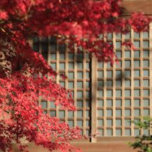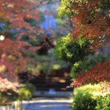 中院では、春の訪れを告げる花々が次々と咲き誇りますが、特にミモザと枝垂れ桜の美しさは見逃せません。まず、鮮やかな黄色のミモザが春の始まりを彩り、境内を優しく包みます。ミモザの繊細でふわふわとした花々は、晴れた日には青空とのコントラストが美しく、撮影に最適です。その後、ミモザが終わる頃に枝垂れ桜が咲き始めます。しなやかな枝から垂れ下がる薄紅色の花びらが、寺院の静けさと調和し、幽玄な風景を作り出します。