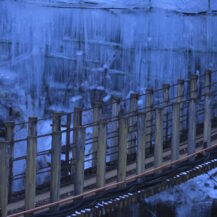 撮影のポイントは、渓谷にかかる吊り橋を構図に取り入れ、上から見下ろす視点を活かすことです。吊り橋の上から撮影すると、氷柱の密度や渓谷の奥行き、高低差を一枚に収めやすく、スマホの広角モードでも十分な迫力を表現できます。氷は白飛びしやすいため、露出をやや抑え気味に設定すると、氷の質感や立体感が際立ちます。また、散水されているタイミングを狙えば、水しぶきが加わり、静的になりがちな氷の風景に動きと臨場感を与えることができます。
