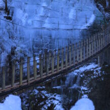 尾ノ内渓谷の氷柱は吊り橋と俯瞰構図が魅力の冬の撮影スポット