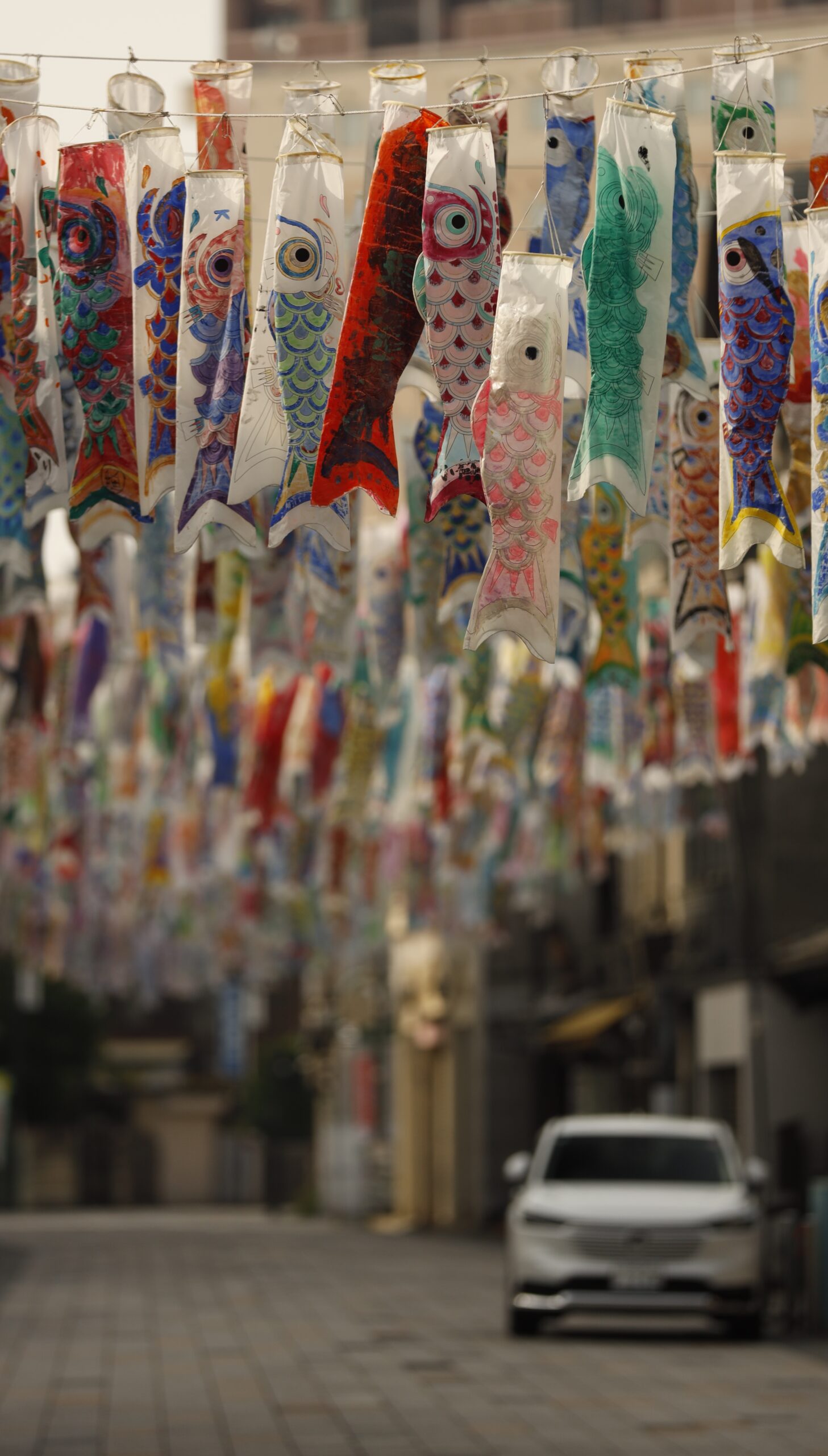 川越の大正浪漫夢通りでは、春になると色とりどりの鯉のぼりが空を泳ぎ、レトロな街並みに季節の彩りを添えてくれます。明治・大正時代の雰囲気が残る通りに、風にたなびく鯉のぼりが並ぶ様子は、どこか懐かしく、ほっとするような風景です。