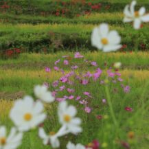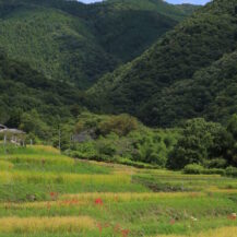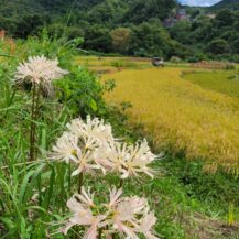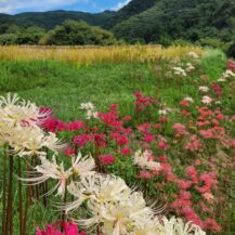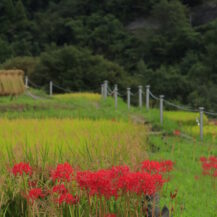 寺坂棚田は、秋になると一面に咲き誇る彼岸花と美しい棚田の風景が調和する、絶好の撮影スポットです。黄金色に実りゆく稲穂と、鮮やかな赤い彼岸花のコントラストはまさに日本の原風景を感じさせます。特に早朝や夕暮れ時は、やわらかな光に包まれ、幻想的な写真を撮影できるのでおすすめです。