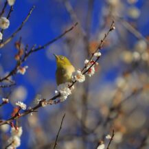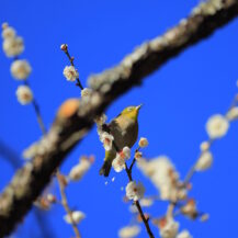 撮影のポイントは、花と光、そして動きのある被写体をどう組み合わせるかを意識することです。梅は枝ぶりが美しいため、まずは引きで全体の流れを捉え、次に花へ寄って主役をはっきりさせると構成が安定します。足元に咲く水仙は低い位置から狙うことで、梅を背景にした奥行きのある一枚が作りやすくなります。メジロは朝の時間帯に活発になるため、光がやわらかい早朝を狙い、花の近くでしばらく様子を観察するのがコツです。露出は明るくしすぎず、花の色を優先しながら、背景を整理して撮ることで、熱海梅園らしい落ち着いた季節感のある写真に仕上がります。