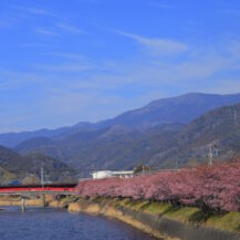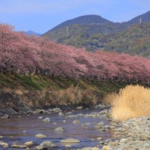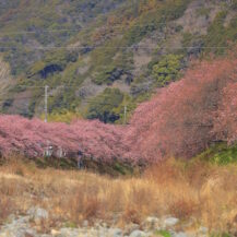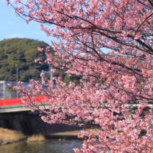 2026年 河津桜まつり(河津町)|川辺から見上げる土手の桜