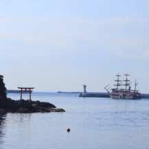 撮影のポイントは、まどが浜海遊公園の開放的なロケーションを活かして海と空の広がりを大きく構図に取り入れ、水平線を画面の上1/3または下1/3に配置してバランスを整えながら、晴天の午前中には順光で下田湾の透明感ある青を引き出し、夕方には逆光気味に撮影して水面のきらめきを活かしつつ露出をややプラス補正して明るさを保ち、遊歩道や手すり、行き交う船を前景やアクセントとして取り入れて奥行きを演出し、広角で空のスケール感を強調するカットと望遠で海面の輝きや船を切り取るカットを撮り分けることです。