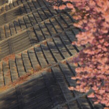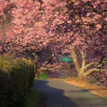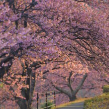 撮影のポイントは、みなみの桜と菜の花まつり(南伊豆町)の河津桜と菜の花の色彩対比を意識し、手前に菜の花を入れて前ボケを作り奥に桜を配置することで奥行きを演出しながら、青野川の流れやカーブを対角線構図で取り入れて視線誘導を行い、早朝のやわらかな斜光を活かして逆光気味に撮影し露出をややプラス補正して花びらの透明感を引き出しつつ、望遠レンズによる圧縮効果で桜並木の密度感を強調し背景を整理することで、立体感と春らしい柔らかさを兼ね備えた一枚に仕上げることです。