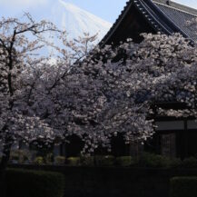 撮影のポイントは、広い境内の中で被写体をどう整理し、静けさを表現するかにあります。大石寺は桜だけでなく、門や本堂といった建築要素が強いため、どこまで入れるか、何を主役にするかを意識することで写真の印象が大きく変わります。まず意識したいのは時間帯です。ここもやはり早朝がおすすめで、澄んだ空気の中では富士山の輪郭がくっきりと現れます。柔らかな朝の光は桜の色を自然に引き出し、建物の陰影も美しく整えてくれるため、全体に落ち着いた雰囲気の一枚に仕上がります。
