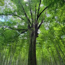 2025年 若竹の杜・若山農場|竹林の中にそびえる大きな木を見上げて この写真は、若竹の杜・若山農場で、竹林の中にそびえる大きな木を下から見上げるアングルで撮影したものです。 2025年2025年8月8月栃木県竹林色々な風景若竹の杜・若山農場