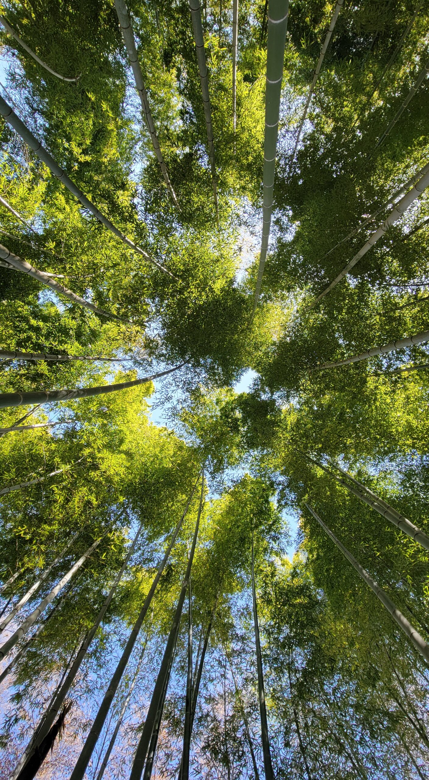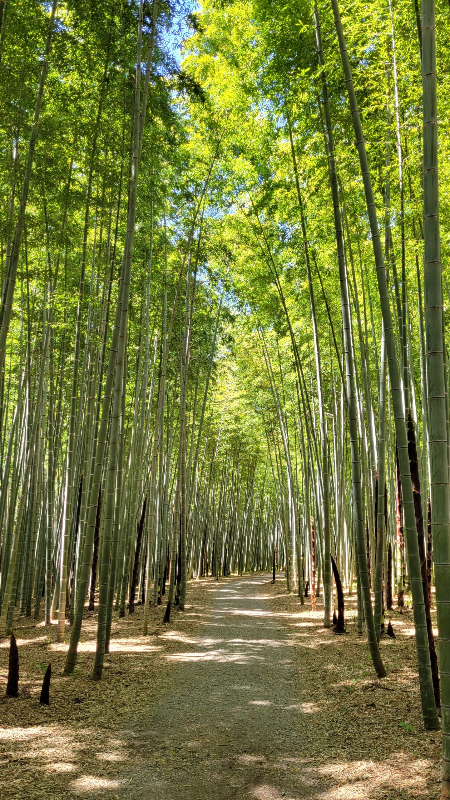若竹の杜・若山農場は、広大な竹林が広がる静寂の中で、四季折々の自然を感じられる素晴らしい撮影スポットです。まっすぐに伸びる竹が天高くそびえ立つ様子は、まるで別世界に迷い込んだかのような幻想的な風景を作り出します。特に、昼間の時間帯がおすすめです。太陽が高く昇ることで、竹林全体にやわらかな光が降り注ぎ、緑が一層鮮やかに映えます。光と影が織りなす美しいコントラストが、竹林の魅力を最大限に引き出してくれるでしょう。