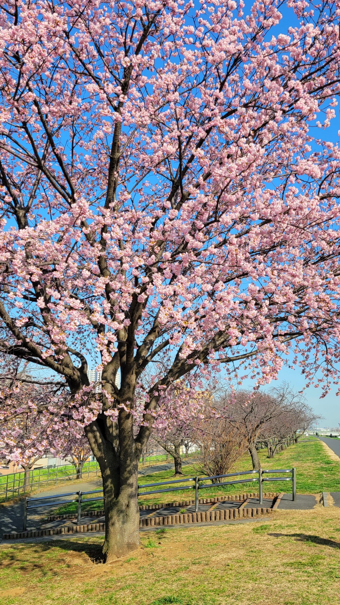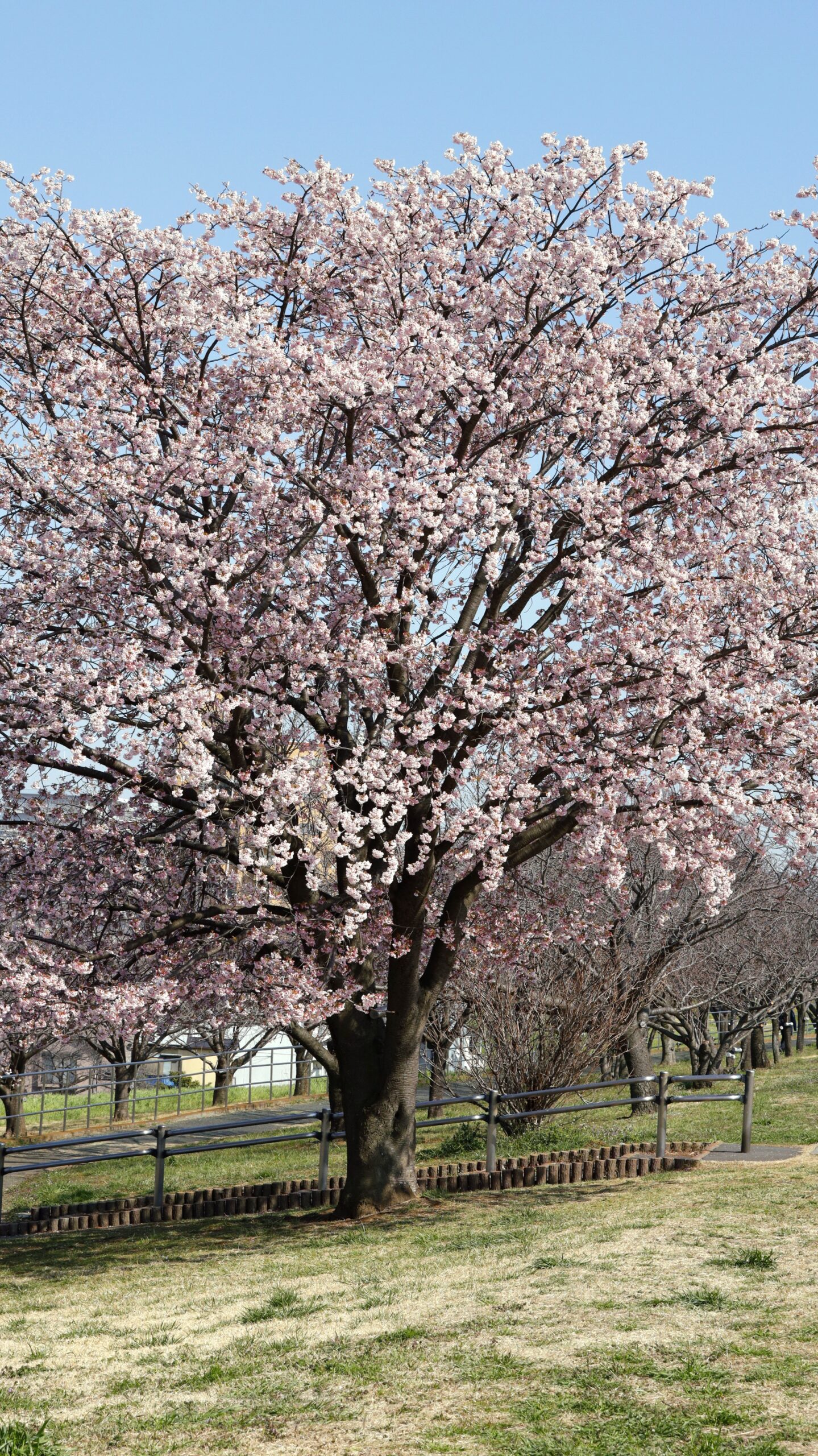 この写真は、土手に咲く1本の安行桜を、全体のバランスを意識しながら撮影しました。
