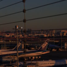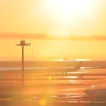 12月 羽田空港|絞り込んだ光の表現 この写真は、羽田空港 第2ターミナル 5F展望デッキで、だいぶ太陽がのぼった段階でF値を絞り、滑走路と飛行機、光のゴーストをあわせて撮影したものです。 12月2025年2025年12月朝焼け朝焼け・夕焼け東京都羽田空港色々な風景飛行機
