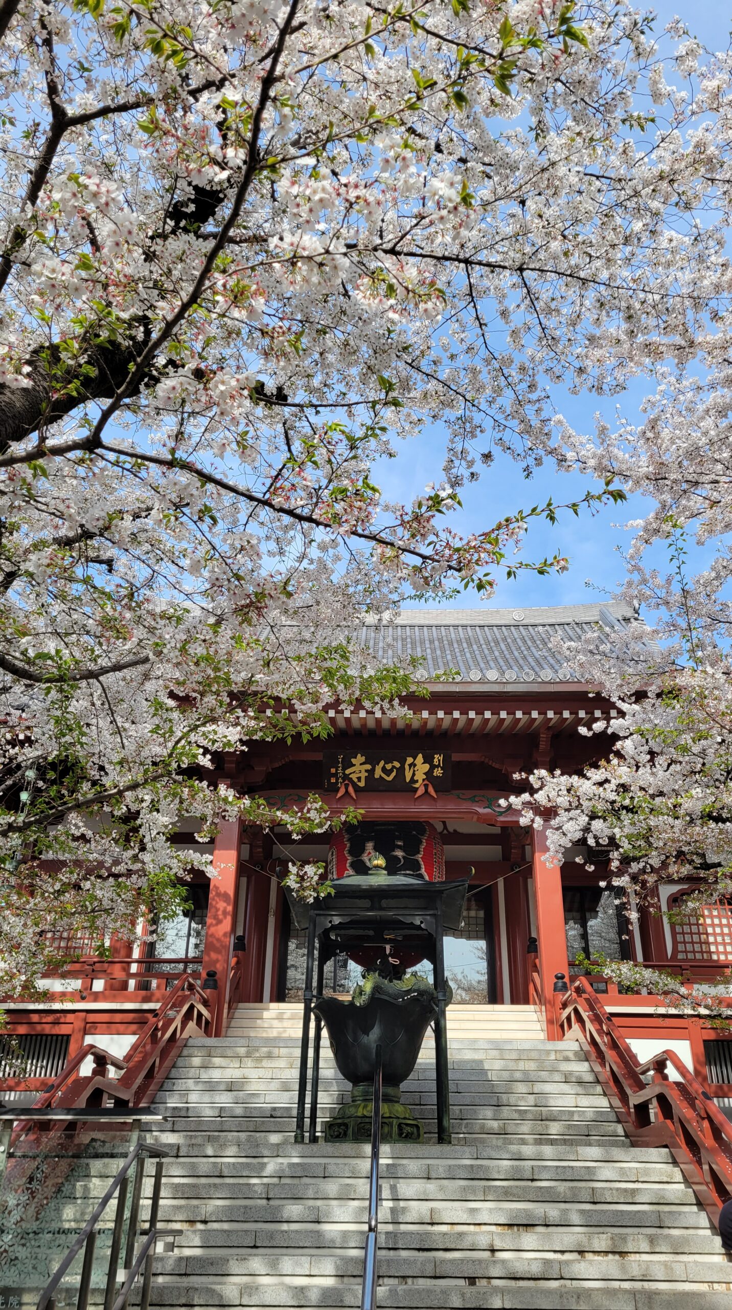 文京区にひっそりと佇む浄心寺は、知る人ぞ知る桜の撮影スポットです。境内には見事な枝ぶりの桜が咲き、静かな雰囲気の中で撮影が楽しめます。歴史ある寺院の建物と桜が織りなす風景は、華やかさというよりも、落ち着いた美しさを感じさせてくれます。