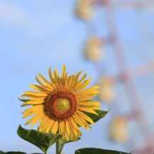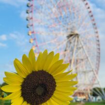 夏になると、葛西臨海公園では鮮やかな向日葵が咲き誇り、青空を背景にした元気いっぱいの景色が広がります。特に、公園のシンボルである観覧車と向日葵が並ぶ風景は、まるで絵葉書のような美しさです。大きな観覧車が空にそびえ、手前には黄色い向日葵が広がるシーンは、夏らしさを感じる絶好の撮影スポットです。晴れた日の青い空と、元気に咲く向日葵が織りなす風景は、明るく華やかな写真を撮るのにぴったり。観覧車のある風景をバックに、夏らしい一枚をぜひカメラに収めてみてください。夕方になると、葛西臨海公園では観覧車のシルエットが美しい夕焼けを背景に浮かび上がります。方角的にも、沈みゆく太陽とともに、観覧車の影がオレンジ色の空に映え、幻想的な風景をカメラに収めることができます。