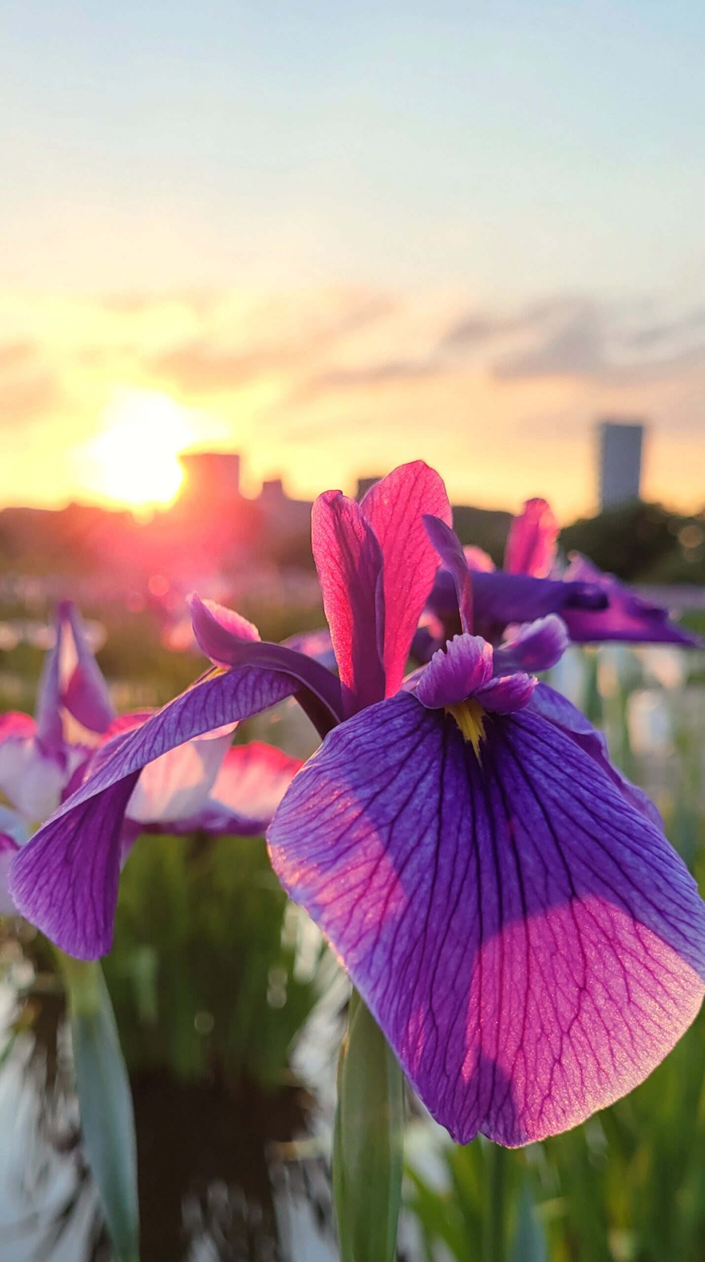 小岩菖蒲園は、晴天の日の出時に見事な花菖蒲と紫陽花が輝く、撮影に最適なスポットです。広がる花菖蒲の優雅な姿と、色鮮やかな紫陽花が朝の光に照らされて輝く風景は、まさに絶景。早朝のやわらかな光が花々に降り注ぎ、青空とのコントラストが一層際立ちます。特に、日の出の時間帯は静かで澄んだ空気の中、花が最も美しく見える瞬間です。花菖蒲の繊細な色彩と紫陽花の鮮やかなブルーやピンクが、朝の光に照らされてキラキラと輝く様子は、カメラに収めたくなる美しさです。