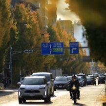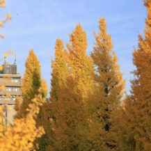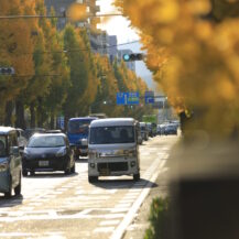甲州街道イチョウ並木は、秋の撮影スポットとして圧倒的におすすめしたい場所です。街道沿いにずらりと続くイチョウの木々が一斉に黄金色へと染まり、まるで金色の川が一直線に流れているかのようなスケール感に圧倒されます。